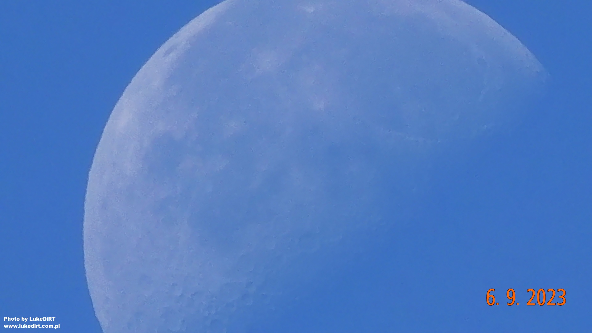 Bardzo lubię taki widok Księżyca po pełni na porannym, intensywnie błękitnym niebie :) Księżyc wygląda tak niestandardowo, bo niby jest jasny i mocno się wyróżnia, a jednak nie jest srebrny, nie ma tego koloru, do którego nas przyzwyczaja. Zdjęcia piękne, dobrze oddają ten widok, który podziwiałem dziś rano przez lornetkę :)