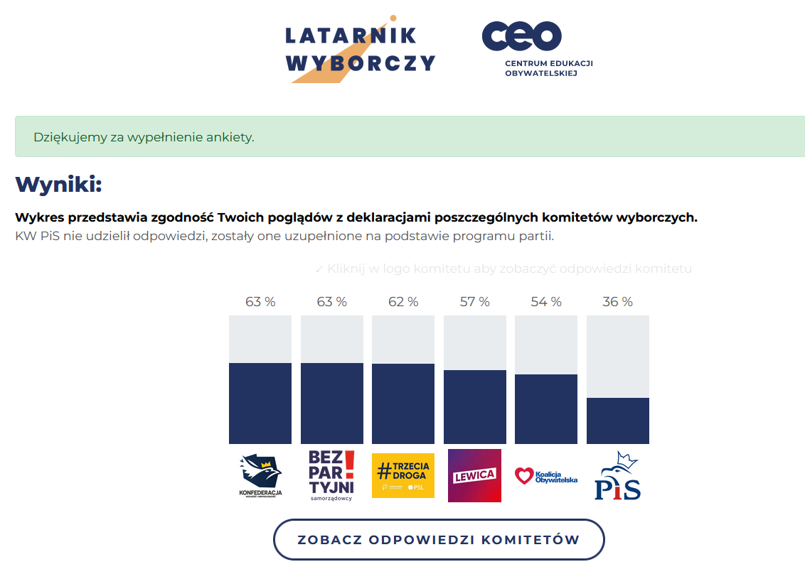 Trochę się zasmuciłem, że wraz z pojawieniem się nowej edycji testu znikła stara, ale uświadomiłem sobie, że z potężnym narzędziem jakim jest strona Wayback Machine można z powrotem zobaczyć starszy kwestionariusz (wybory prezydenckie 2020), a nawet jeszcze starsze (wybory parlamentarne 2015/2019 i wybory do Parlamentu Europejskiego 2014).