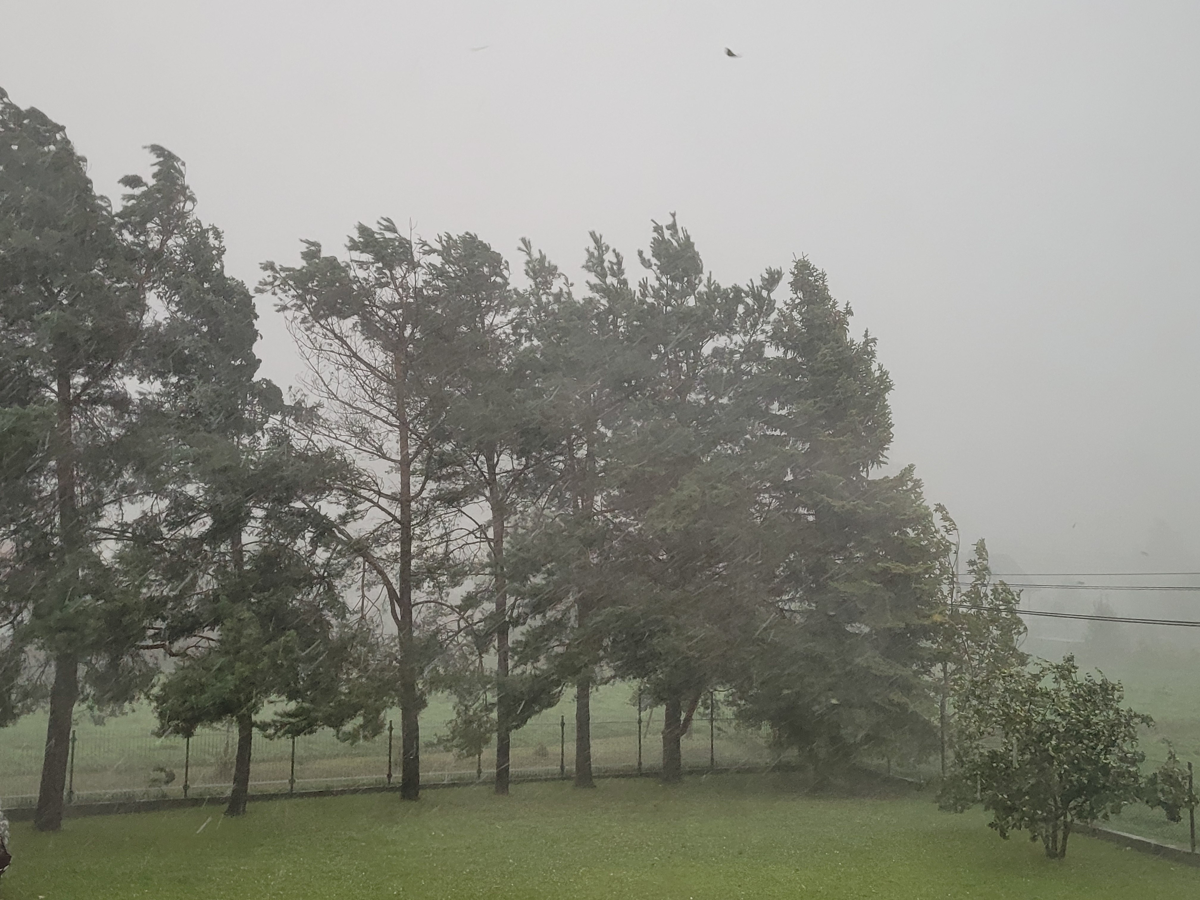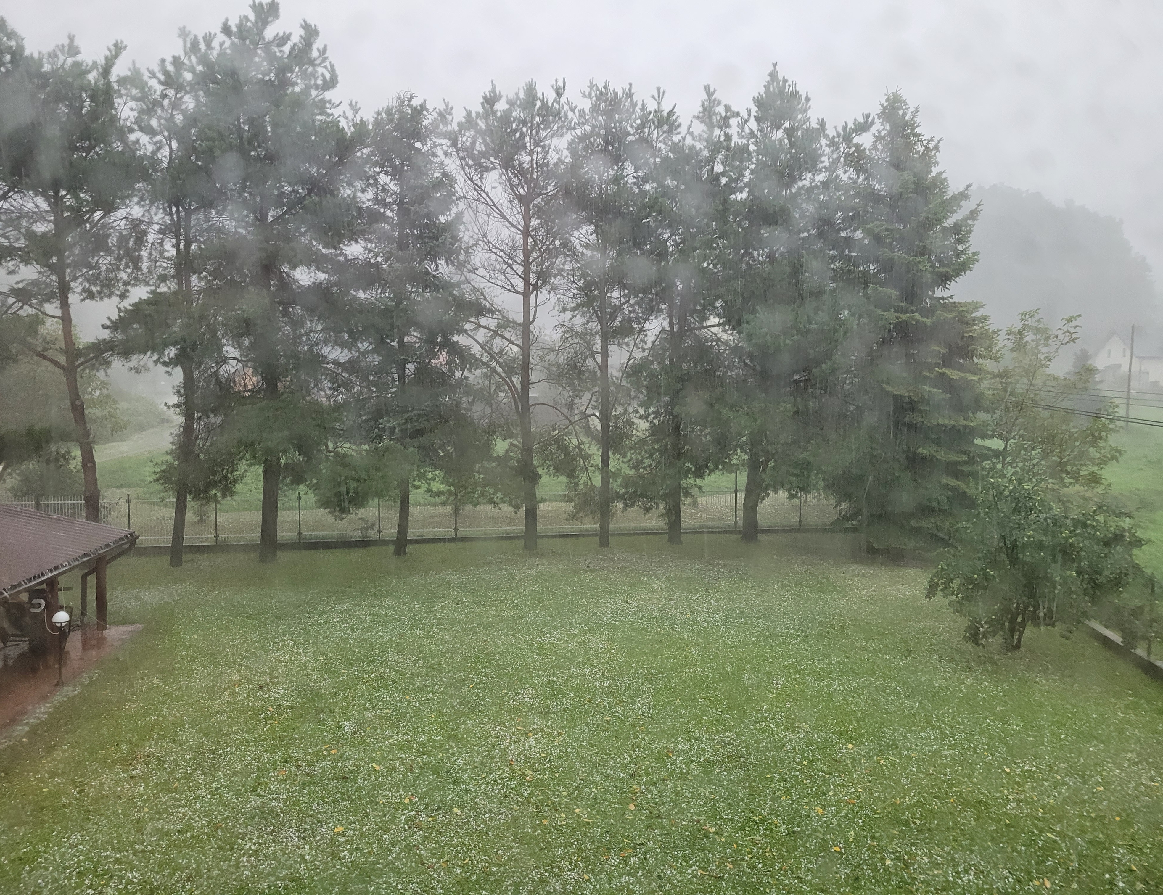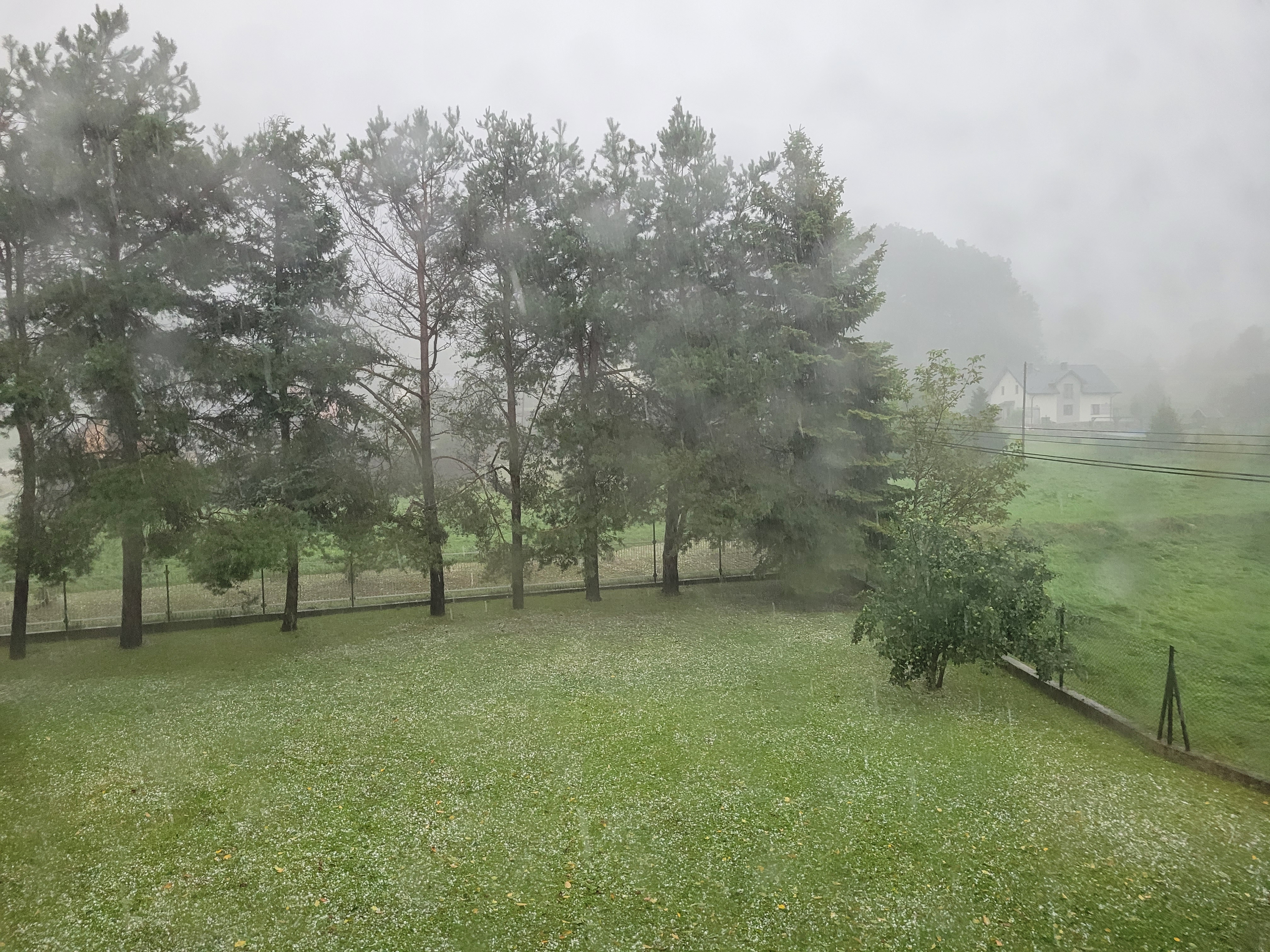 O godzinie 15:04 przy wichurze o sile tylko nieznacznie ustępującej tej z 24 czerwca 2021 roku, z nieba zaczął lecieć lód. Wśród gradzin pokazywały się latające kawałki drzew, aż wystraszyłem się możliwości wystąpienia trąby powietrznej.