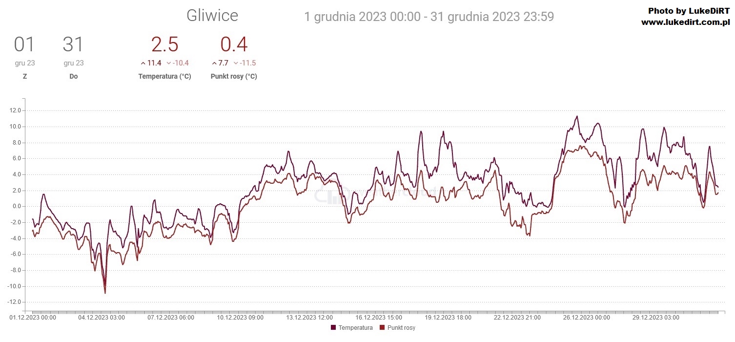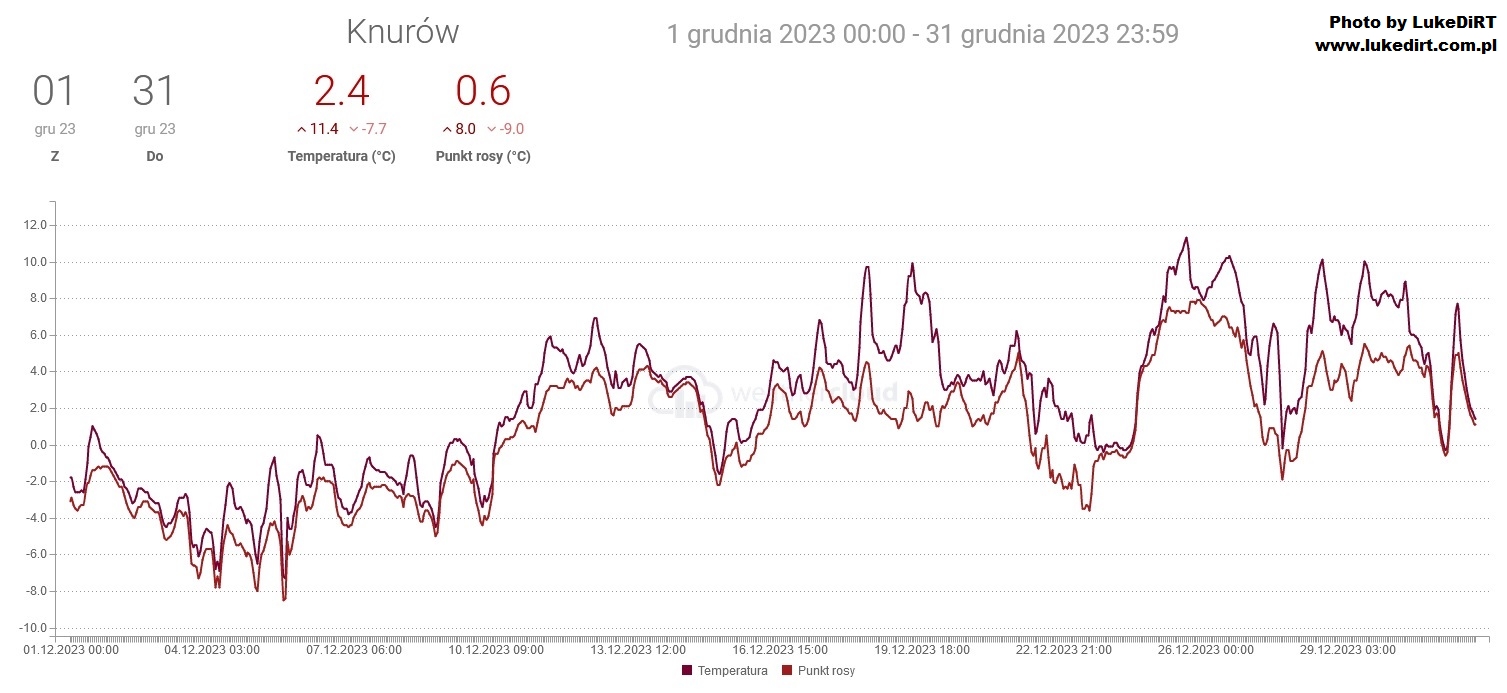 Moim zdaniem podsumowanie jest takie: Z pogodowej zimy (nie mylić ani z meteorologiczną, ani astronomiczną) która nastała już na przełomie drugiej i trzeciej dekady listopada, pod koniec pierwszej dekady grudnia wróciliśmy do pogodowej szarugi jesiennej. Przed świętami (22-23 grudnia) był niewielki epizod namiastki zimy, ale święta znów były "po wodzie" i tak do końca roku. Tak było lokalnie u nas.