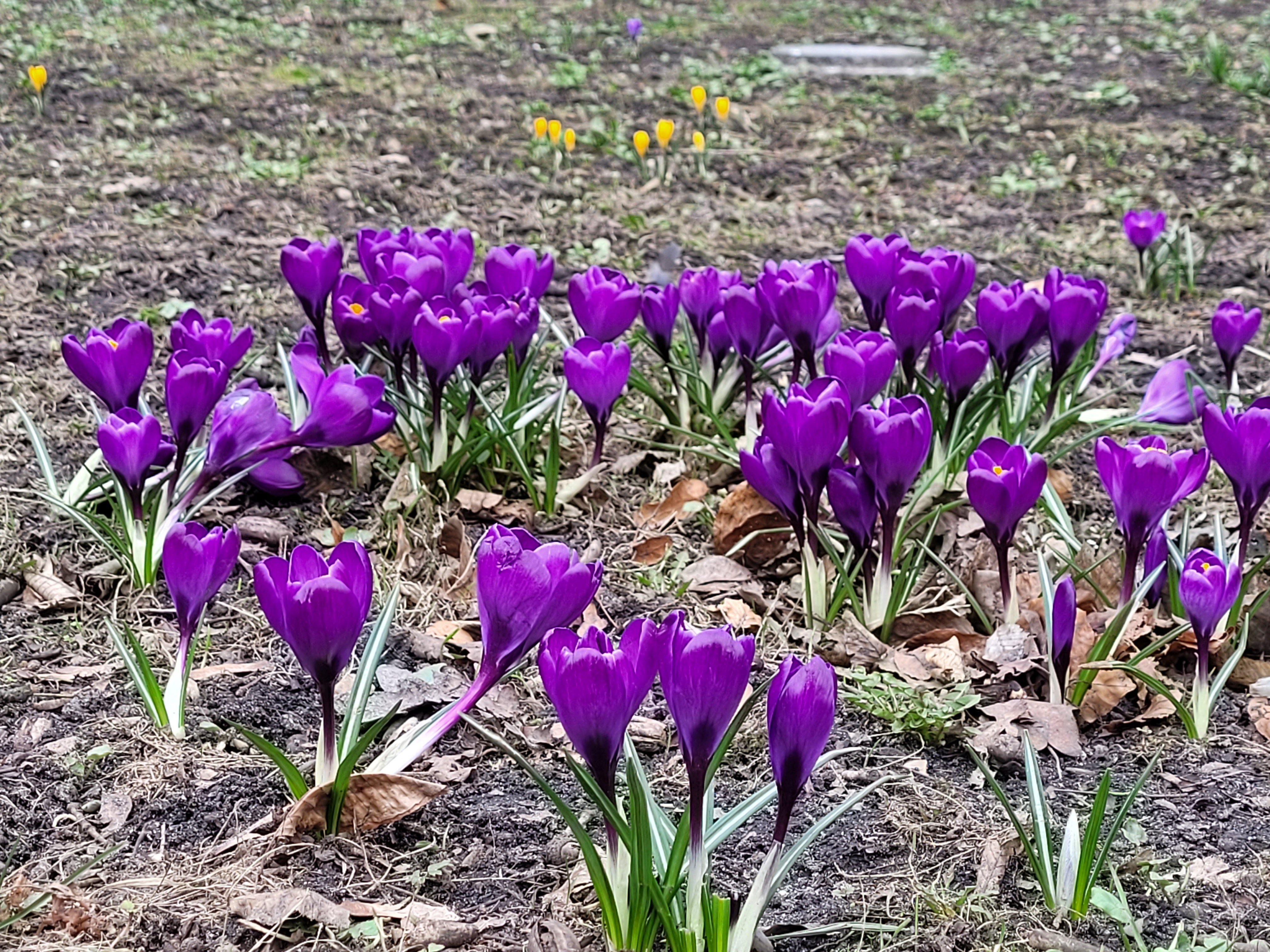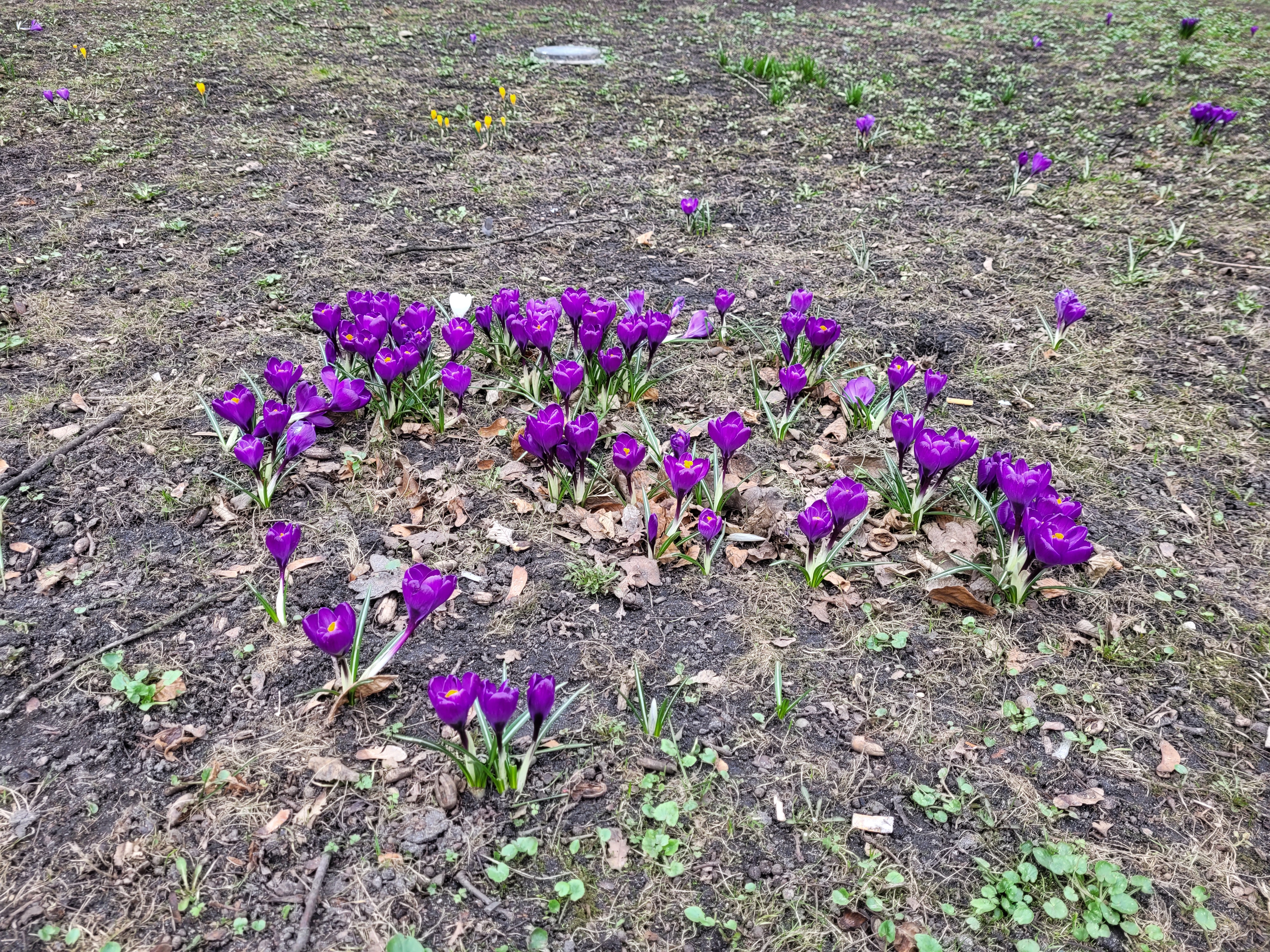 Dziś po raz pierwszy zaobserwowałem krokusy w takiej ilości Temperatura jest wiosenna, 14 stopni po ciepłej nocy brzmi nieźle, nawet jeśli wolałbym jeszcze zobaczyć jakąś próbę ratowania honoru przez zimę, która w świetle astronomicznego podziału pór roku wciąż trwa