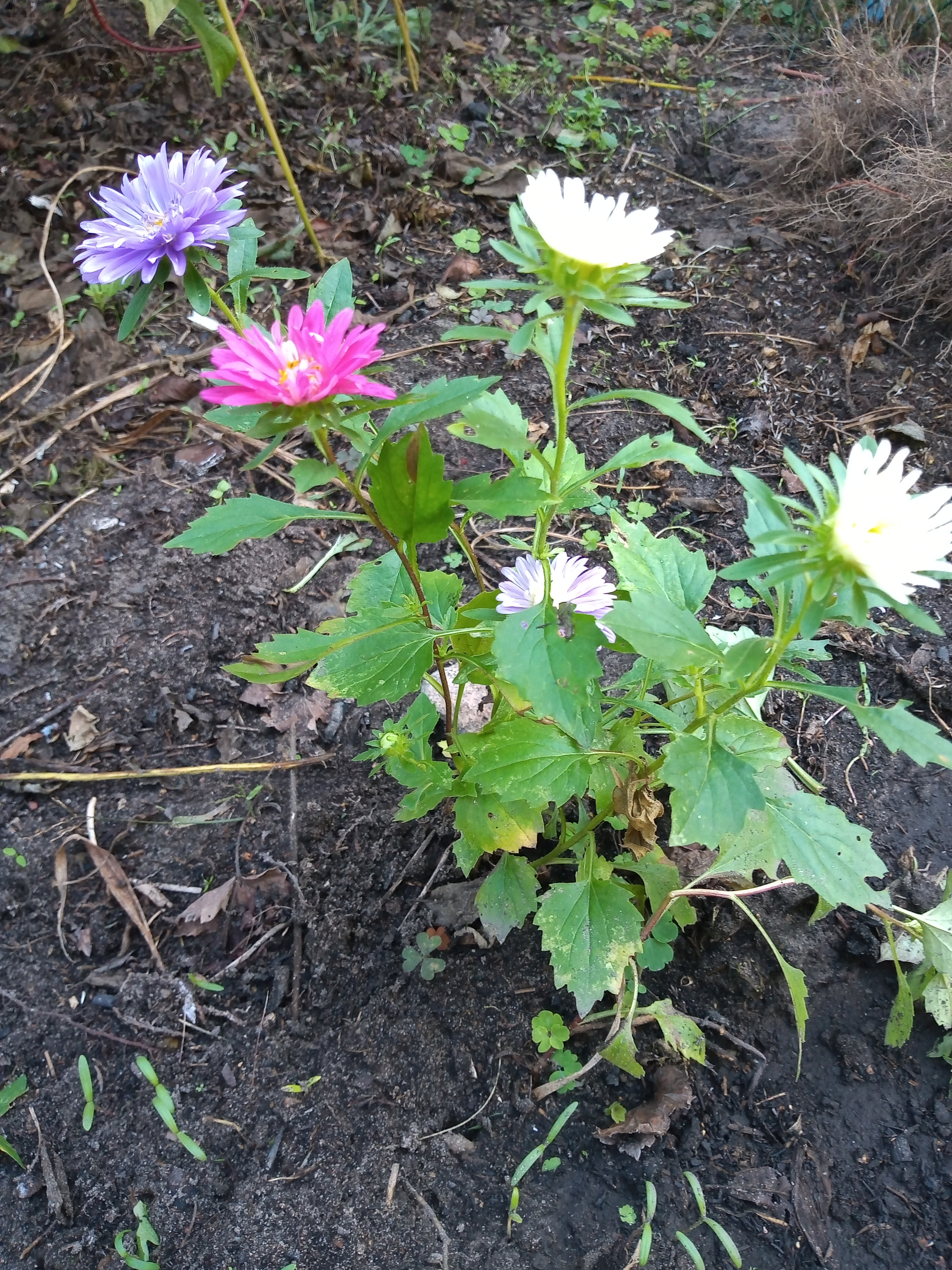 Teraz drugie pokolenie tegorocznych astrów. Wyrosły z nasion kwiatów które już dawno przekwitły i zostały wyrzucone na kompost.