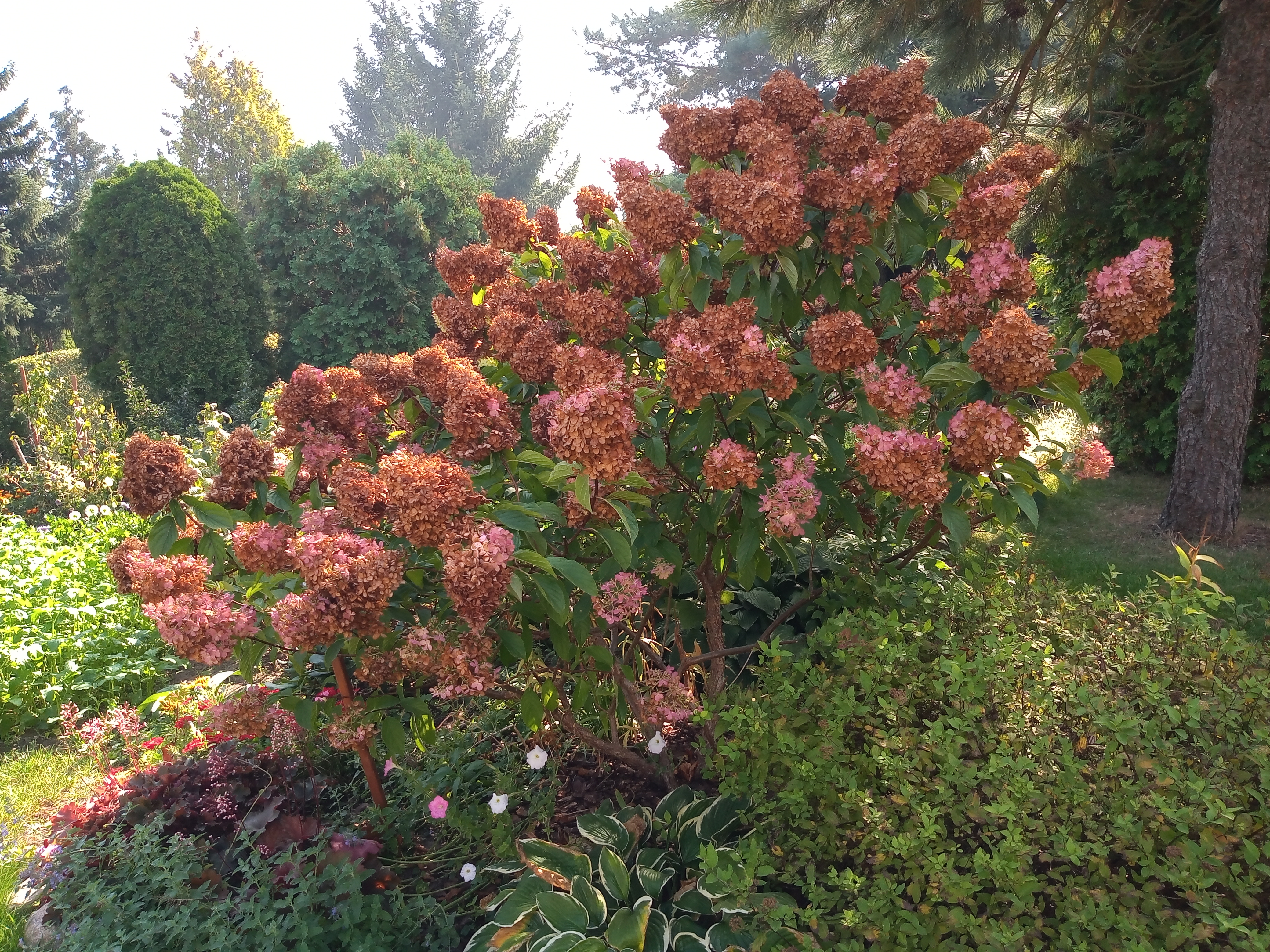 Kwiaty hortensji brązowieją, na jednym krzewie bardziej, na drugim mniej. Wiadomo: nadeszła złota polska jesień :ok: