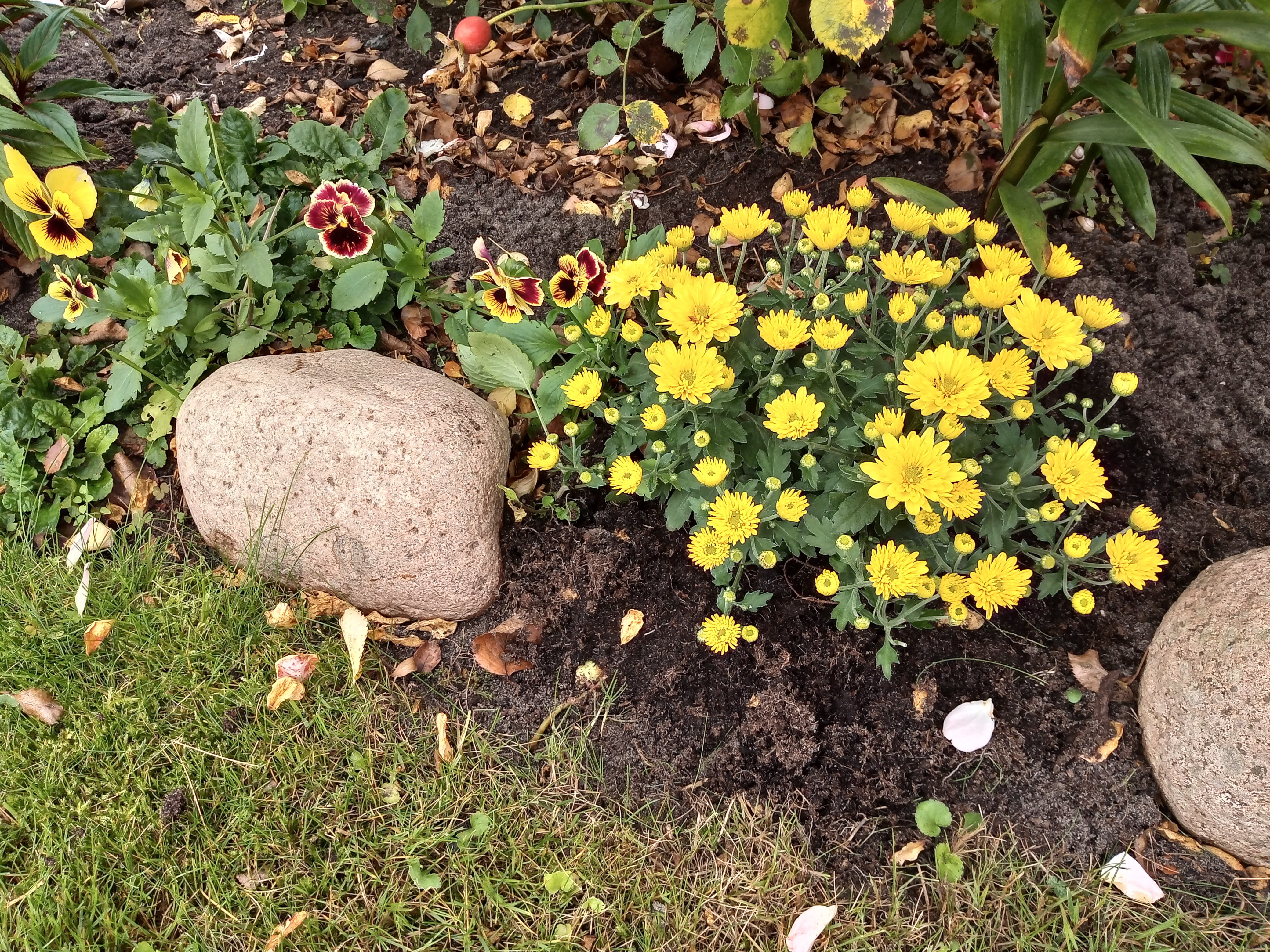 Chryzantema dzisiaj posadzona na działce.