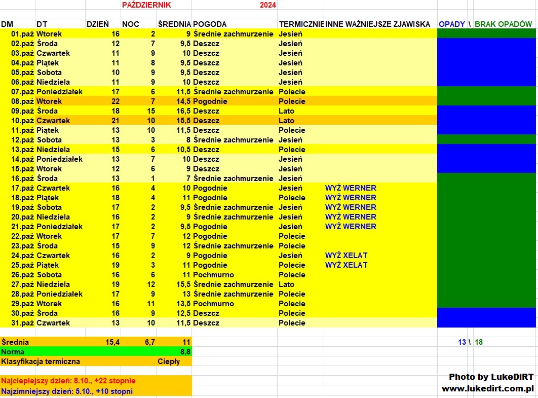 U mnie październik był o 2,5 stopnia zimniejszy . Ogólnie tylko raz od 1990 roku październik średnią miesięczną miał u mnie powyżej 10 stopni a było to w 2000 roku.