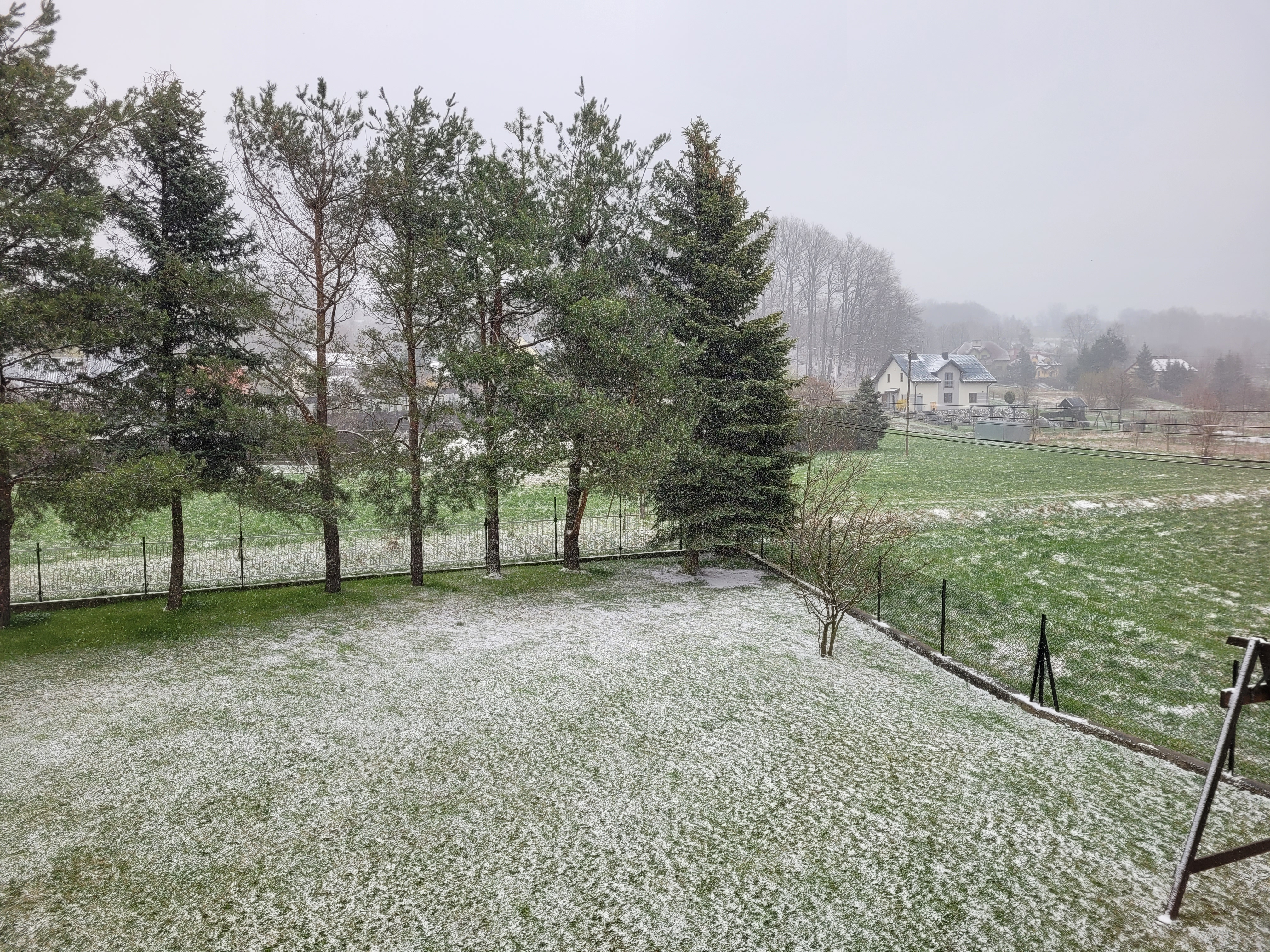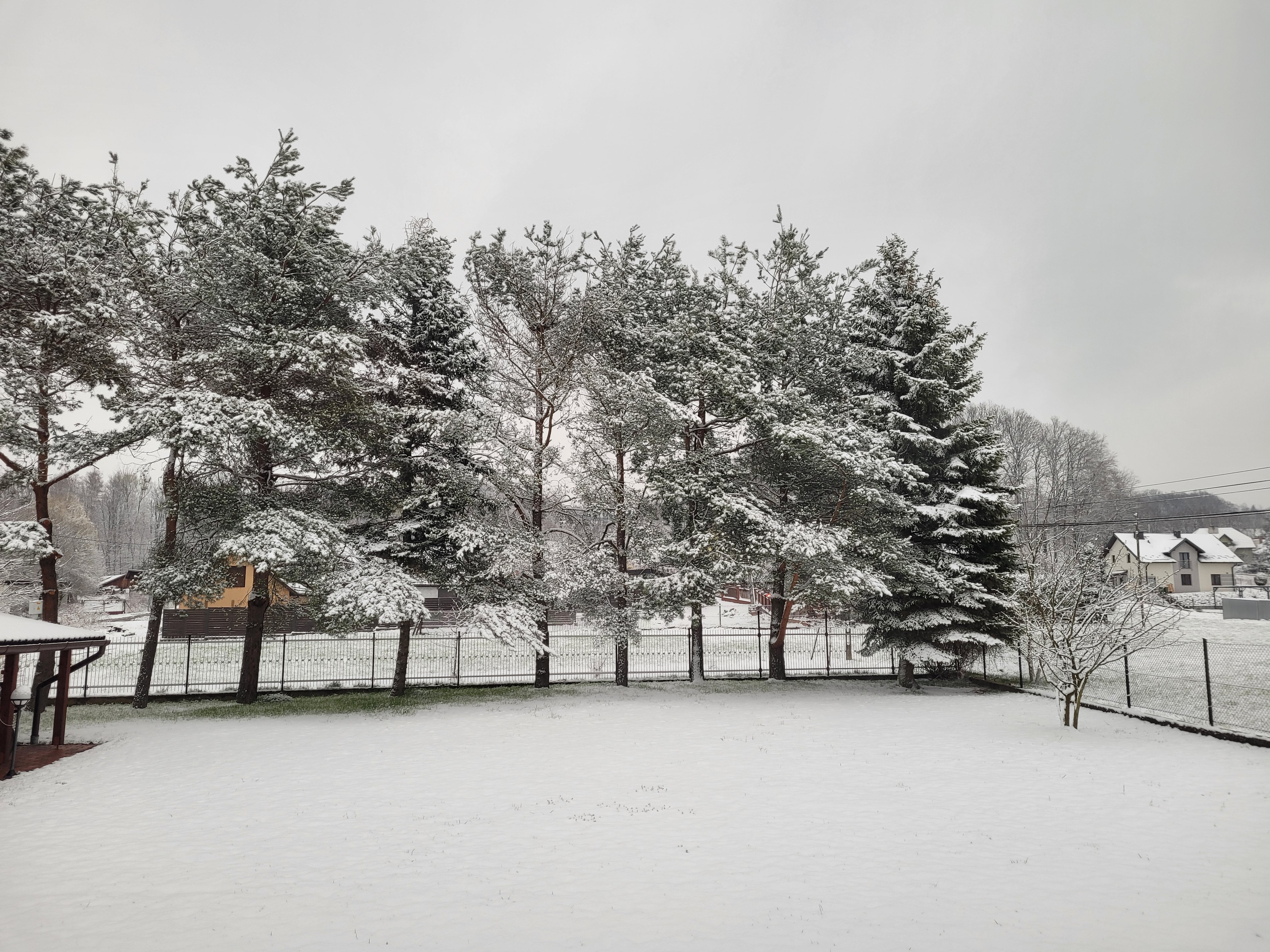 Przypomniałem sobie, jak w 2013 roku byłem zaskoczony tym, ile jest śniegu i że taka pogoda jest możliwa w kwietniu. Do tego czasu takie krajobrazy i tyle bieli w tym miesiącu było dla mnie czymś obcym. Incydent z 2012 roku mi umknął, a wcześniej "kwietniowa zima" ze śniegiem wystąpiła dopiero w 2003 roku, poza moim zasięgiem. Żaden kwiecień lat 2004-2011 nie przyniósł żadnych opadów śniegu o pokrywie nie wspominając. Była to najdłuższa w historii seria bezśnieżnych kwietniów w Nowym Sączu. Tymczasem od 2013 roku większość czwartych miesięcy roku przynosi śnieg, przy czym ostatnie trzy - prawdziwe, regularne pokrywy utrzymujące się przez cały dzień (w 2021 i 2022 nawet więcej niż jeden, teraz tak nie będzie). Niesamowite, naprawdę. Ale to już nie pora na to.