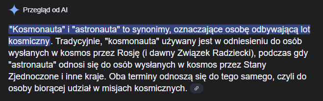 Jeszcze taka mała DYGRESJA: Obecnie lansowane określenie "astronauta" zamiast "kosmonauta", to co najmniej gruba przesada. Jak do tej pory ludzie latali na orbitę wokółziemską, a najdalej na Księżyc, który też orbituje wokół Ziemi. Astrum to po łacinie GWIAZDA. Z orbity wokółziemskiej do gwiazd droga jest bardzo daleka, liczona w latach świetlnych albo w parsekach. Czyli jak do tej pory ludzie latają w KOSMOS, ale nie do gwiazd, dlatego nazwa "astronauta" jest myląca. Za astronautów możemy uważać fikcyjnych bohaterów książek i filmów science fiction takich jak "Gwiezdne Wojny" albo "Solaris" Nawet zdobywcy Księżyca nie są astronautami, najwyżej SELENONAUTAMI, lub po prostu kosmonautami.