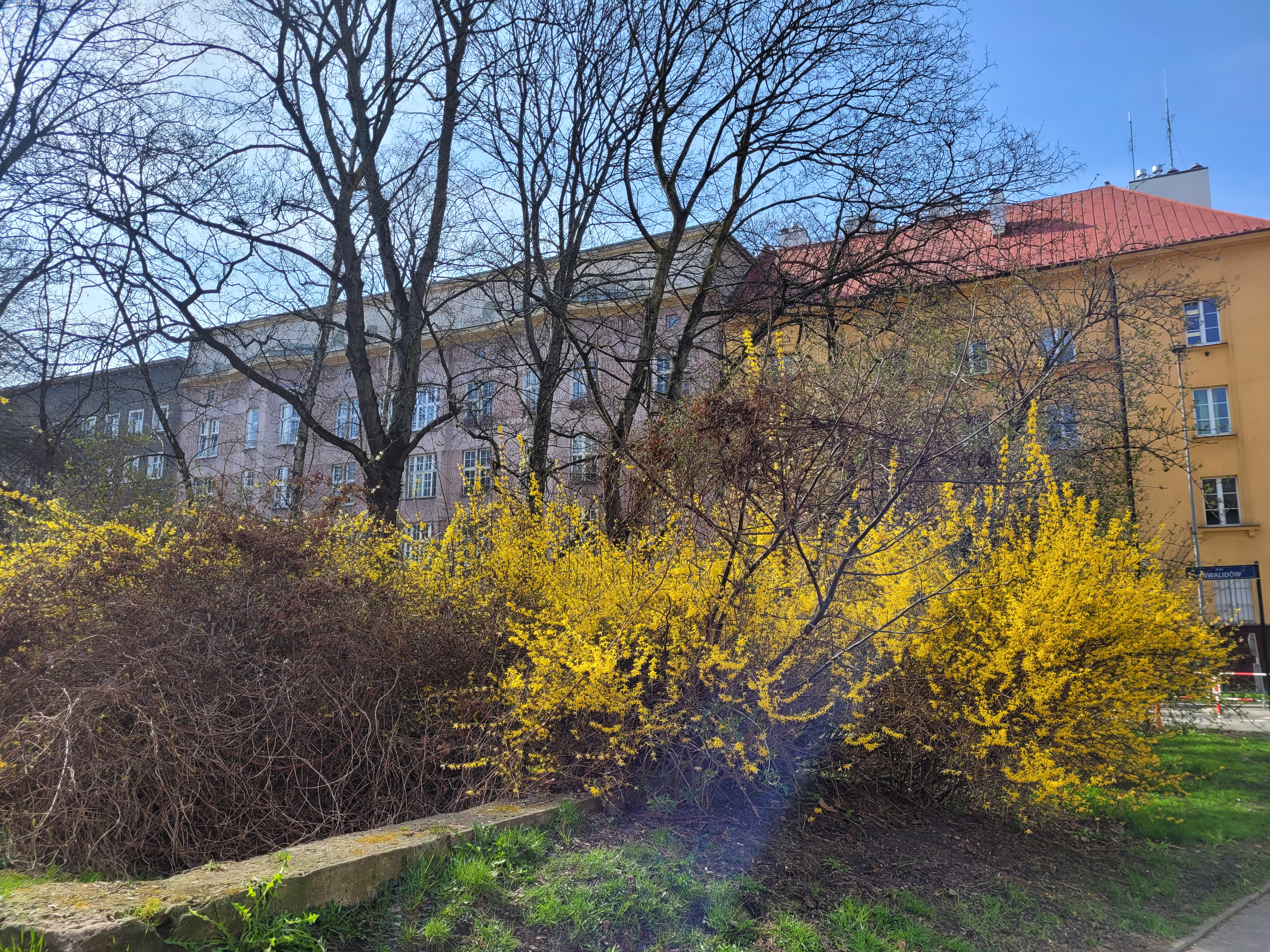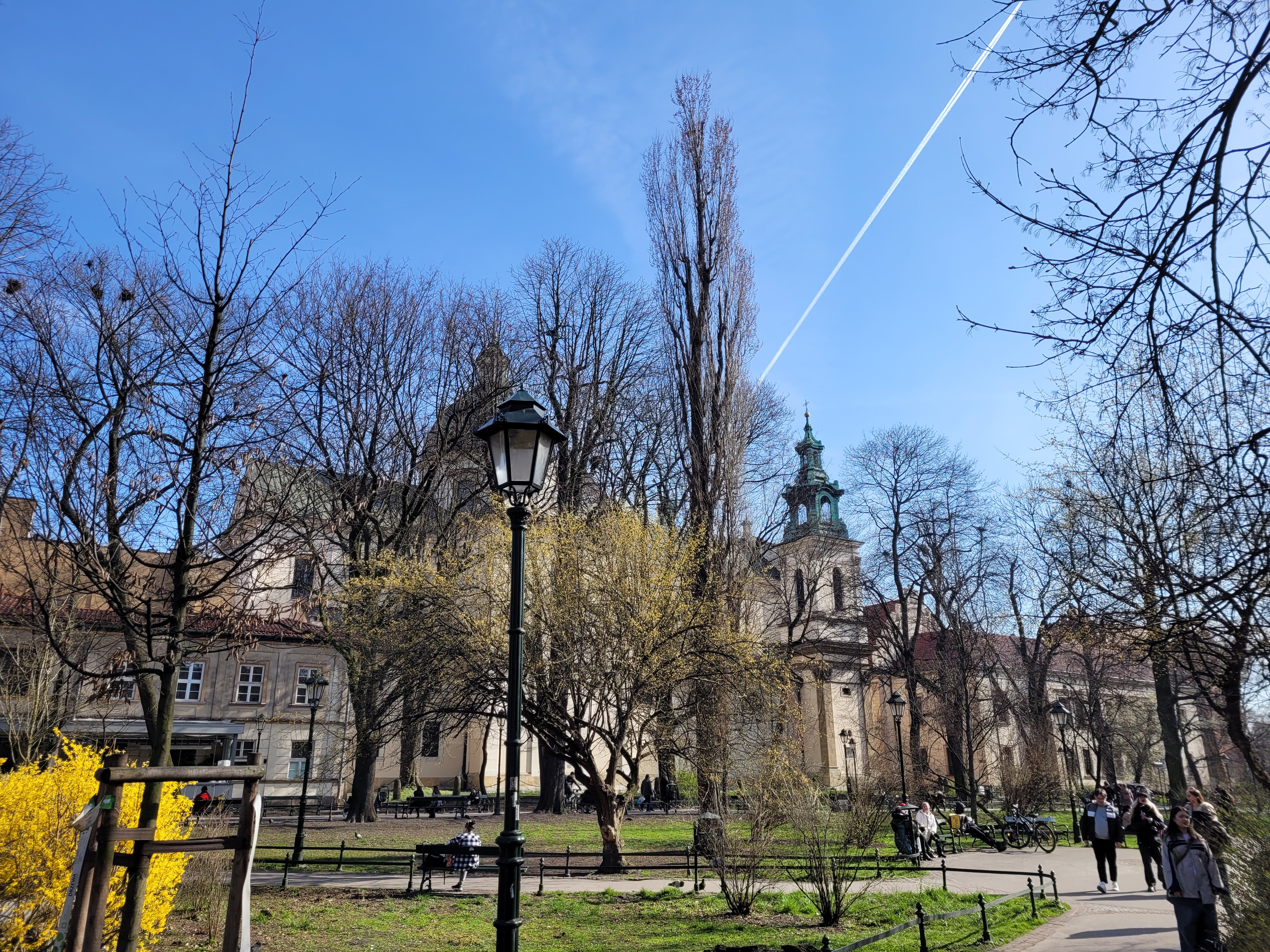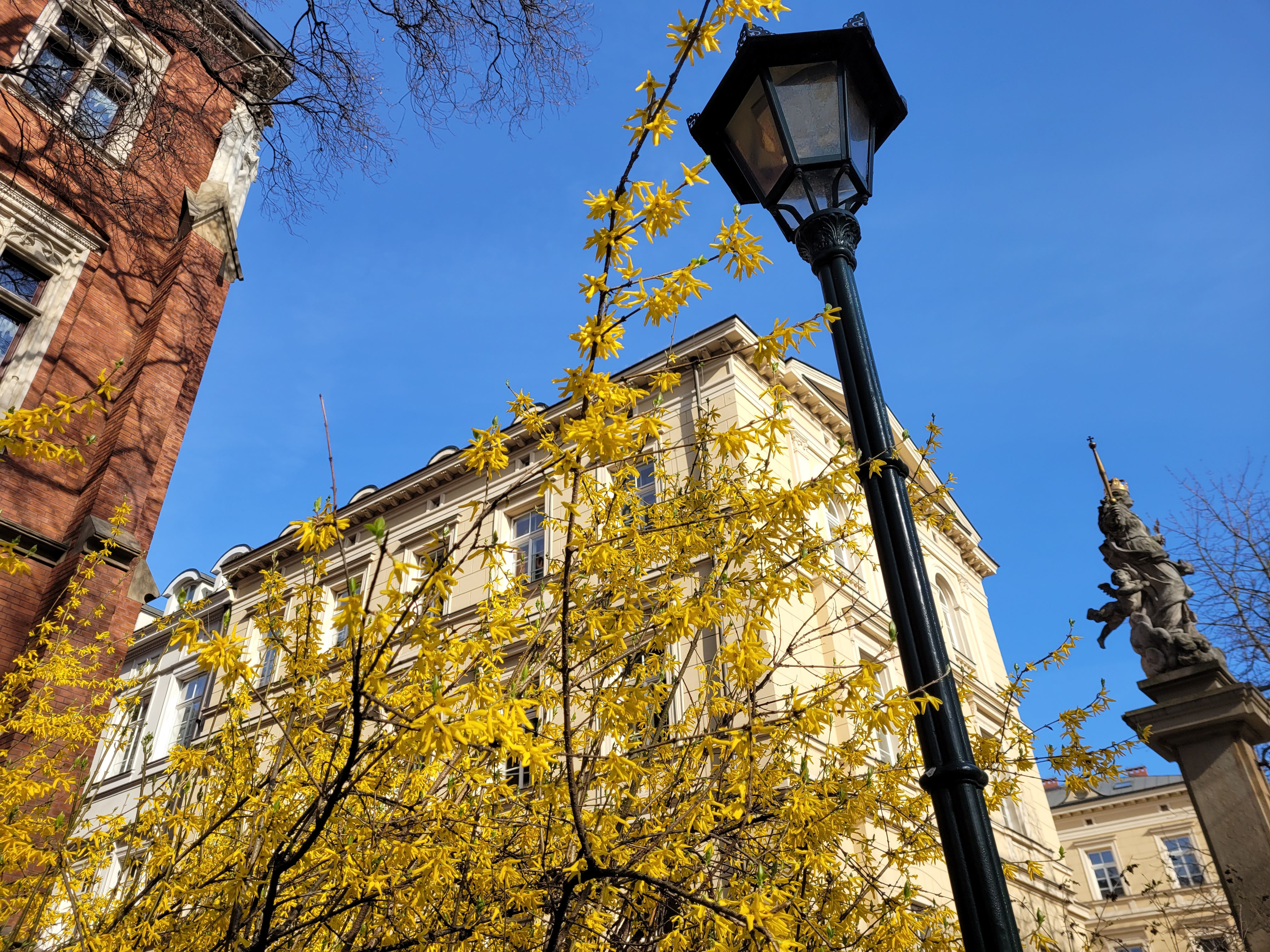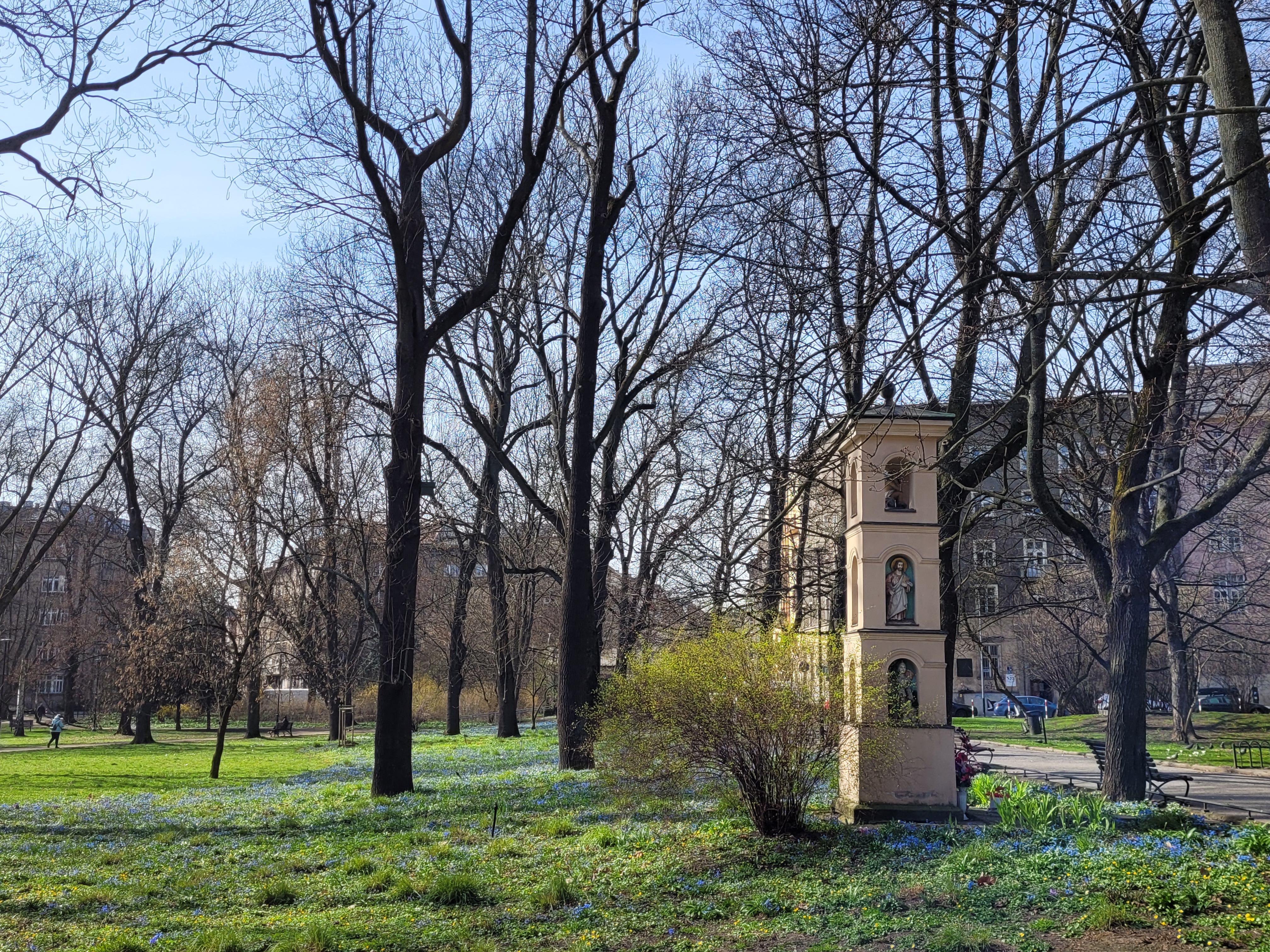 Dzisiejsza krakowska podróż sentymentalna do okolicy, w której mieszkałem, a także w pobliże uczelni. Wiele wspomnień z ubiegłorocznej wiosny połączyło się z nowymi wrażeniami. Wegetacja jest mocno rozwinięta, aczkolwiek mając w pamięci jej postać 10-12 marca 2020 oraz wiedząc o silnym słonecznym ociepleniu 17-19 marca przypuszczam, że dokładnie cztery lata temu tego dnia poziom wegetacji mógł być nawet identyczny.