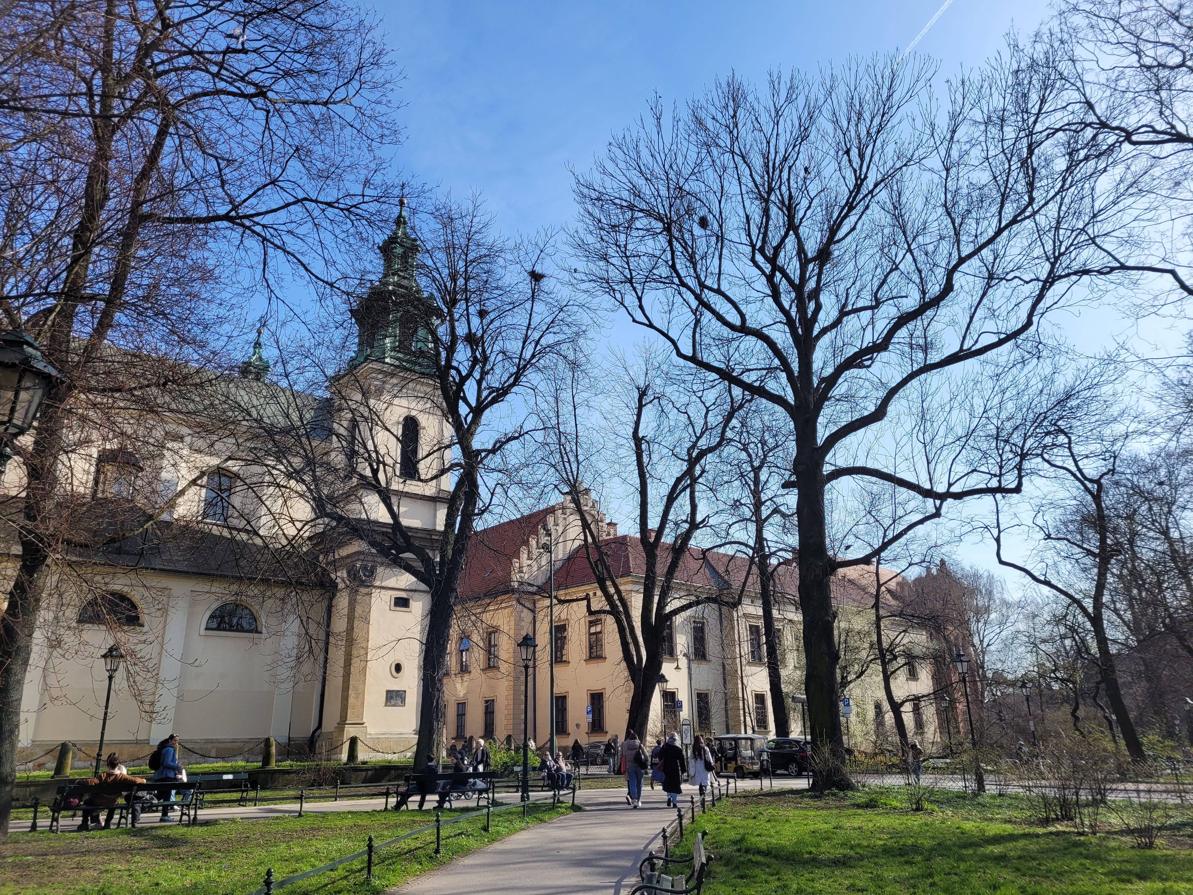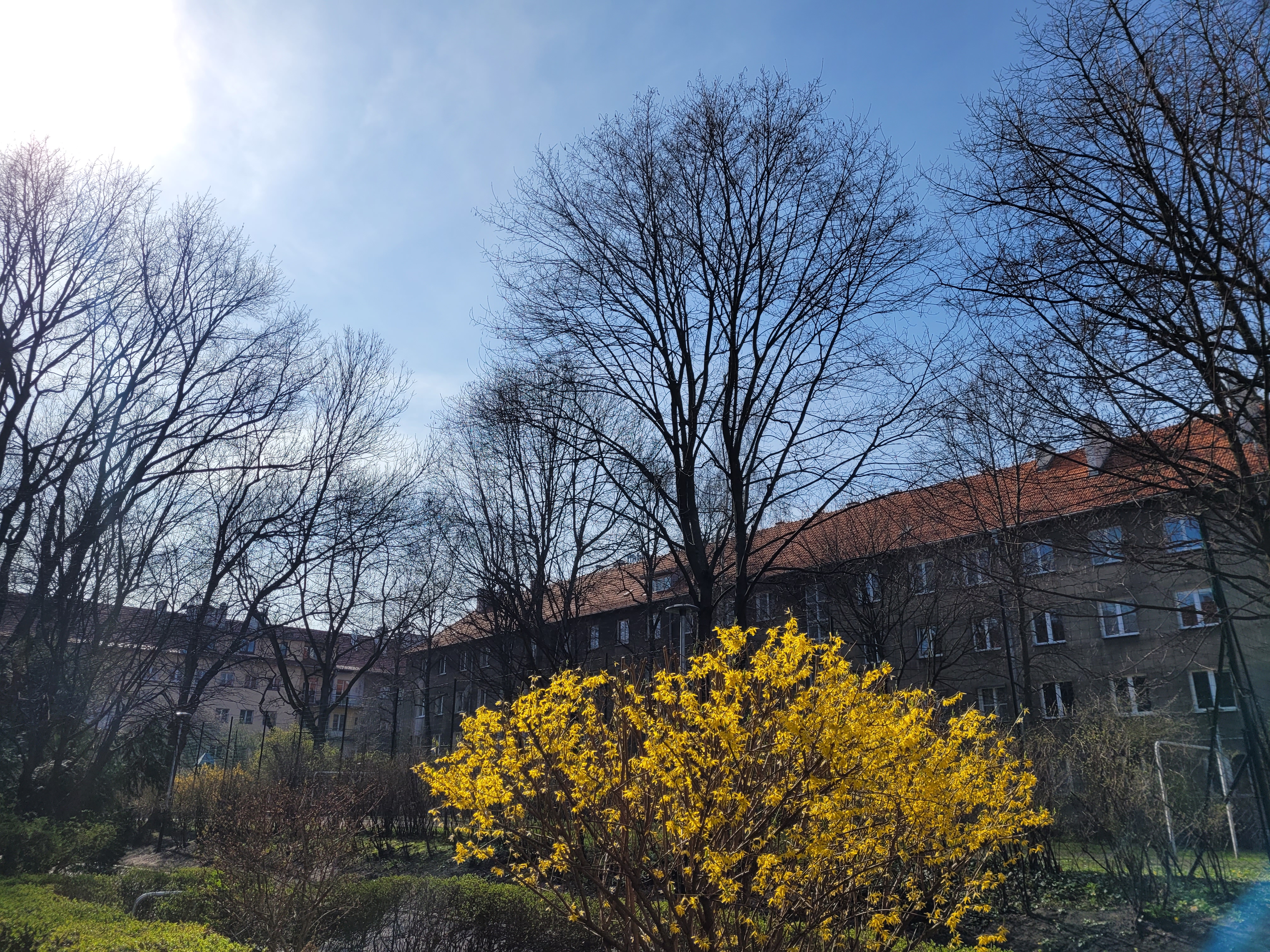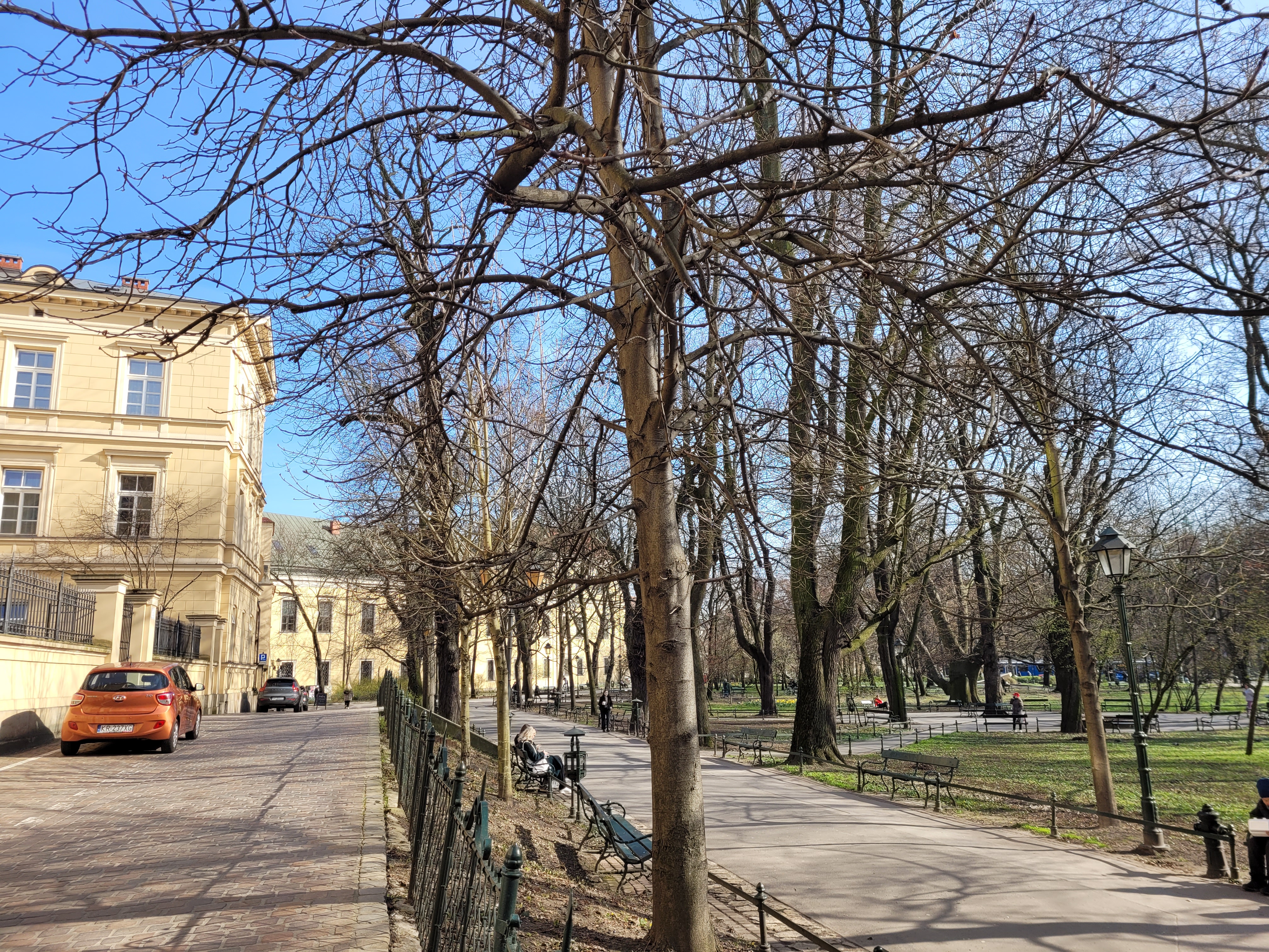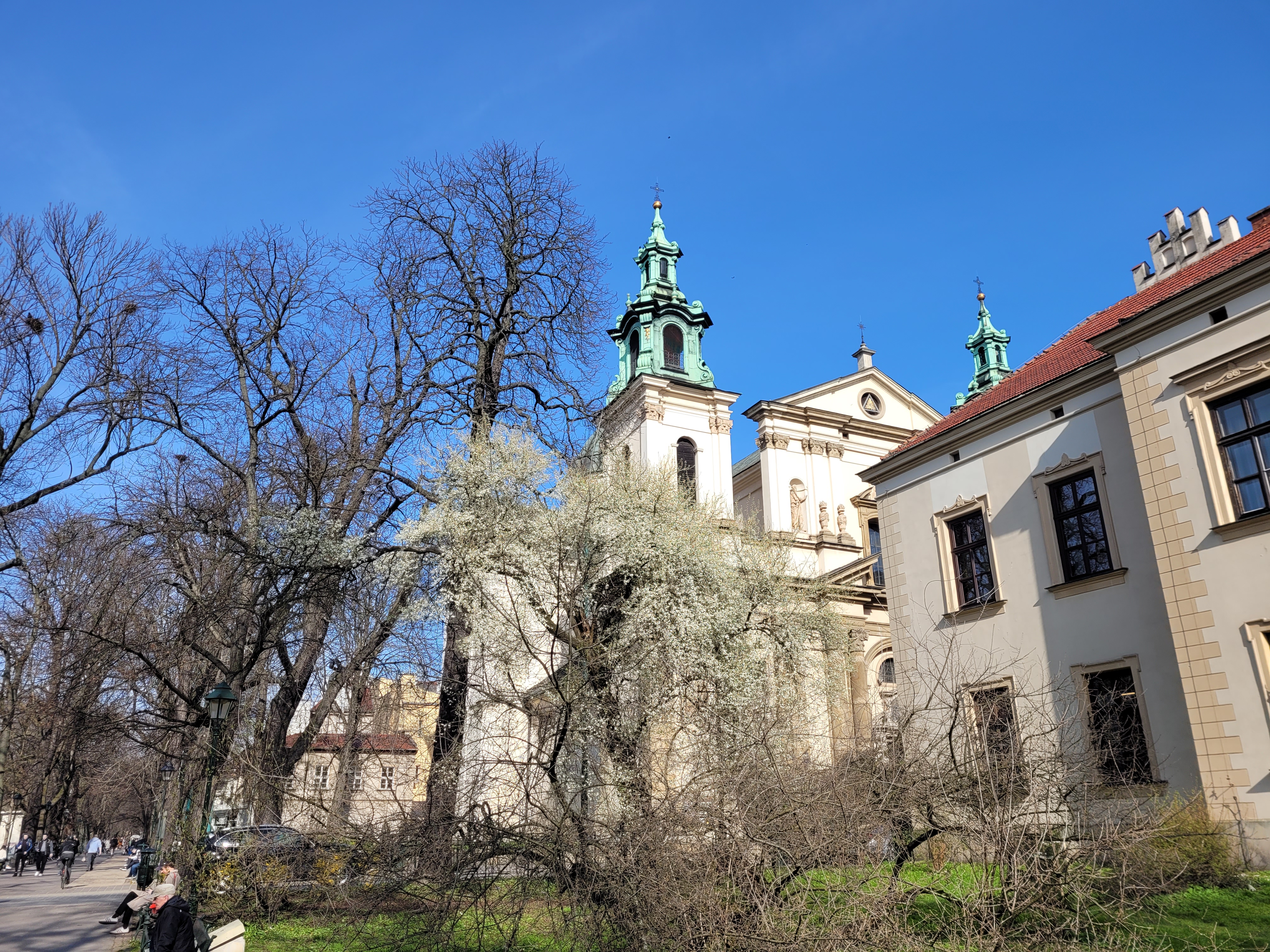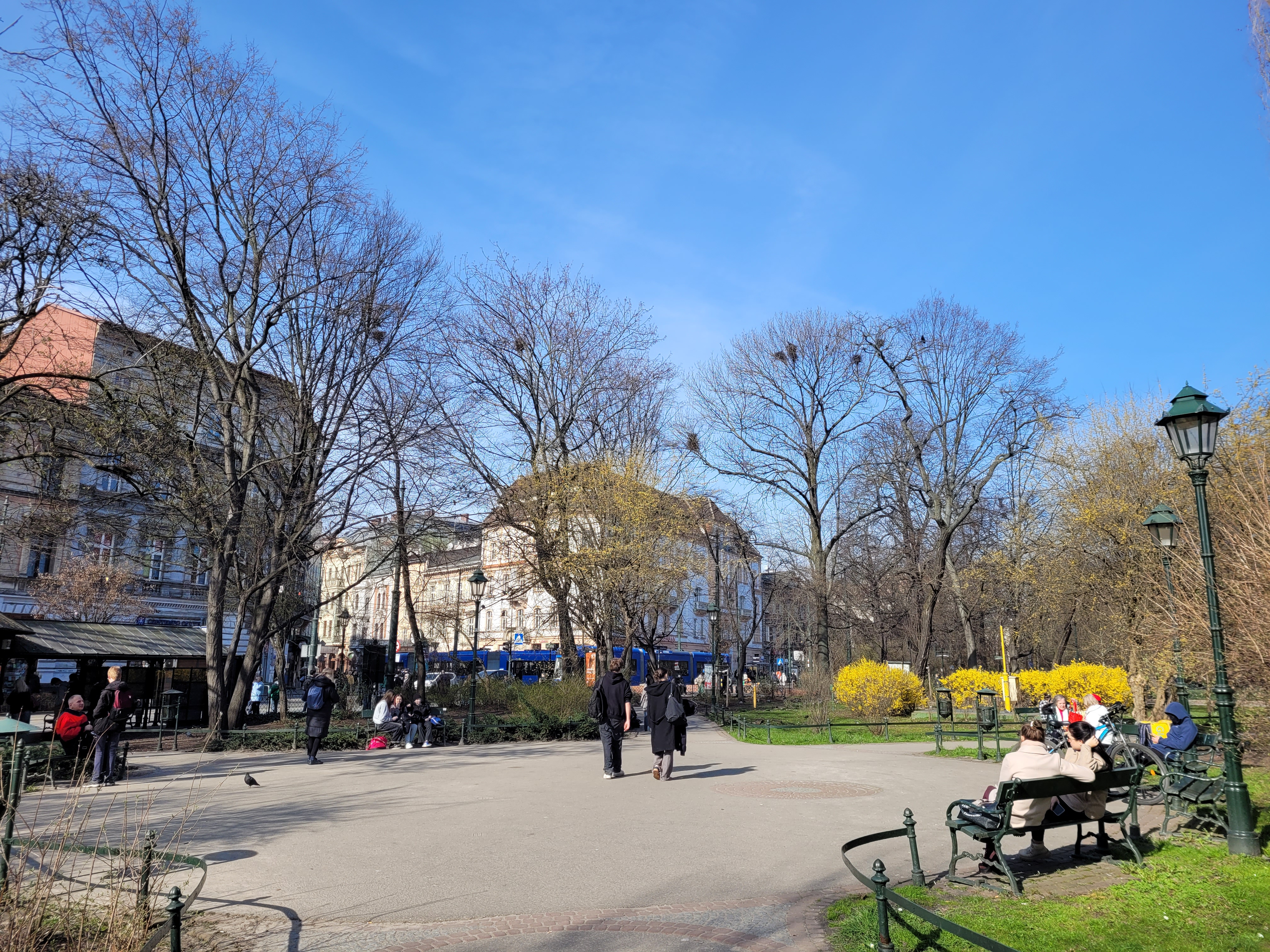 Dzisiejsza krakowska podróż sentymentalna do okolicy, w której mieszkałem, a także w pobliże uczelni. Wiele wspomnień z ubiegłorocznej wiosny połączyło się z nowymi wrażeniami. Wegetacja jest mocno rozwinięta, aczkolwiek mając w pamięci jej postać 10-12 marca 2020 oraz wiedząc o silnym słonecznym ociepleniu 17-19 marca przypuszczam, że dokładnie cztery lata temu tego dnia poziom wegetacji mógł być nawet identyczny.