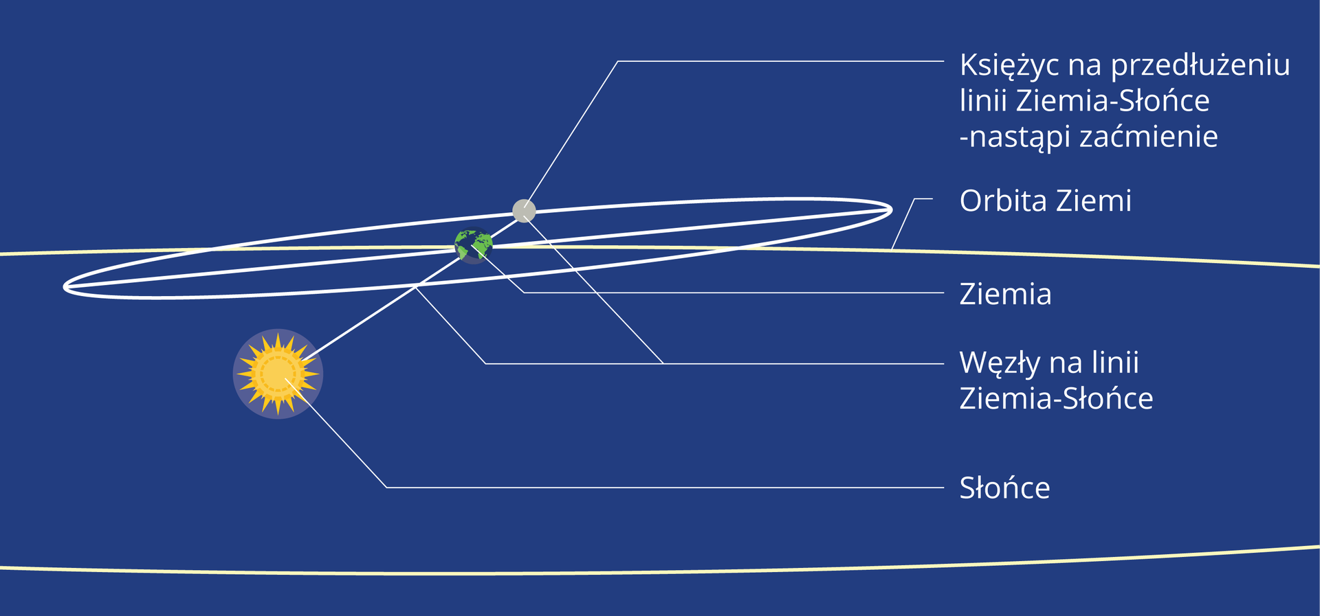 Z tego powodu mamy tylko dwa miejsca, w których Księżyc może przeciąć się z ekliptyką. Zostały one oznaczone jako węzły. Jeden z nich nazywa się węzłem wstępującym, drugi - zstępującym.