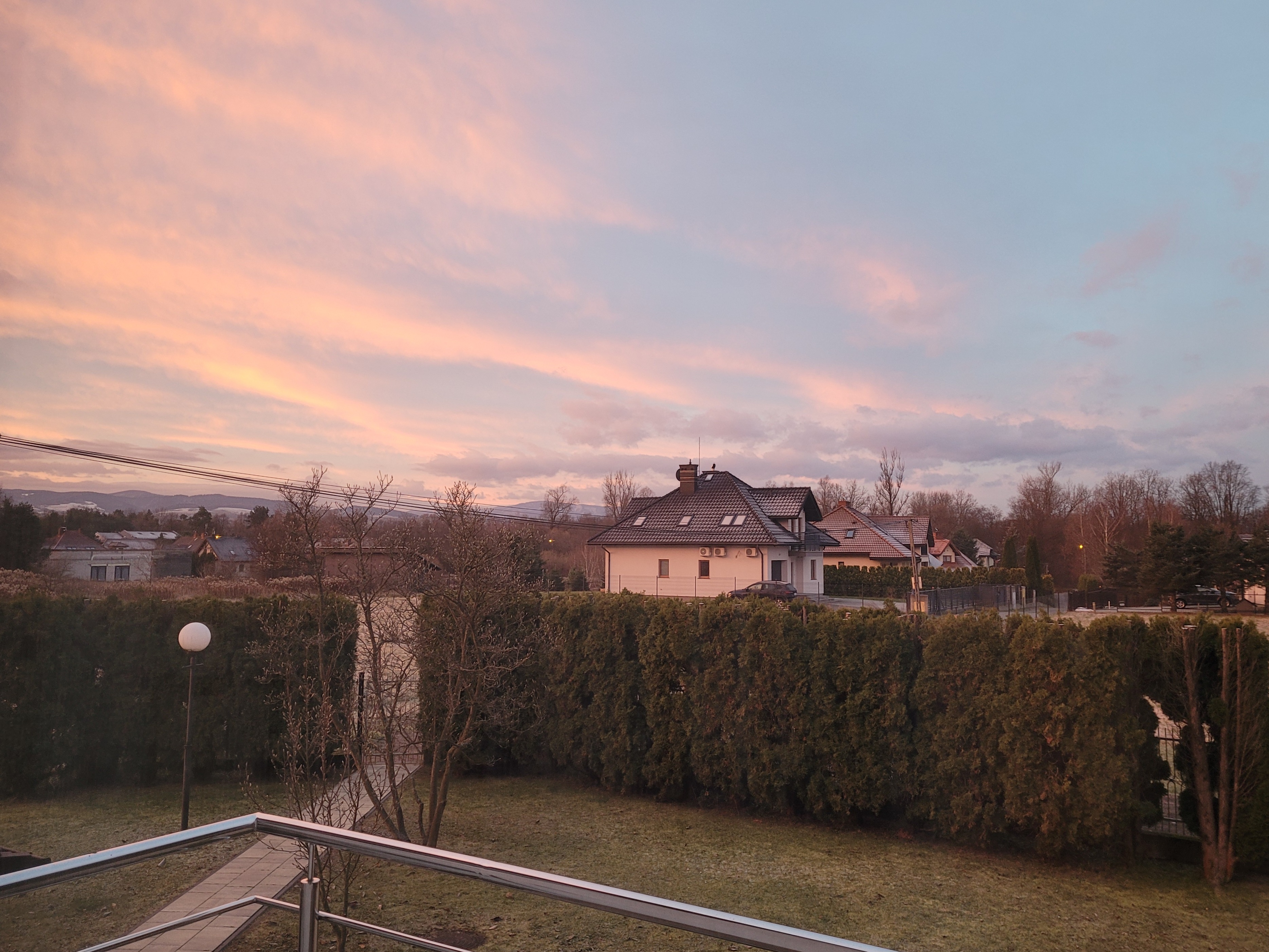 Tak jak przed uderzeniem fali tsunami morze się cofa, tak przed uderzeniem śnieżycy przyszło ocieplenie. Dzień zaczął się od nieba pełnego kolorów. Pojawiło się słońce. Niebo chwilami było bezchmurne. Temperatura sięgała 8 stopni i tak spokojnie, bez fajerwerków upływał zwykły nudnopadowy dzień...
