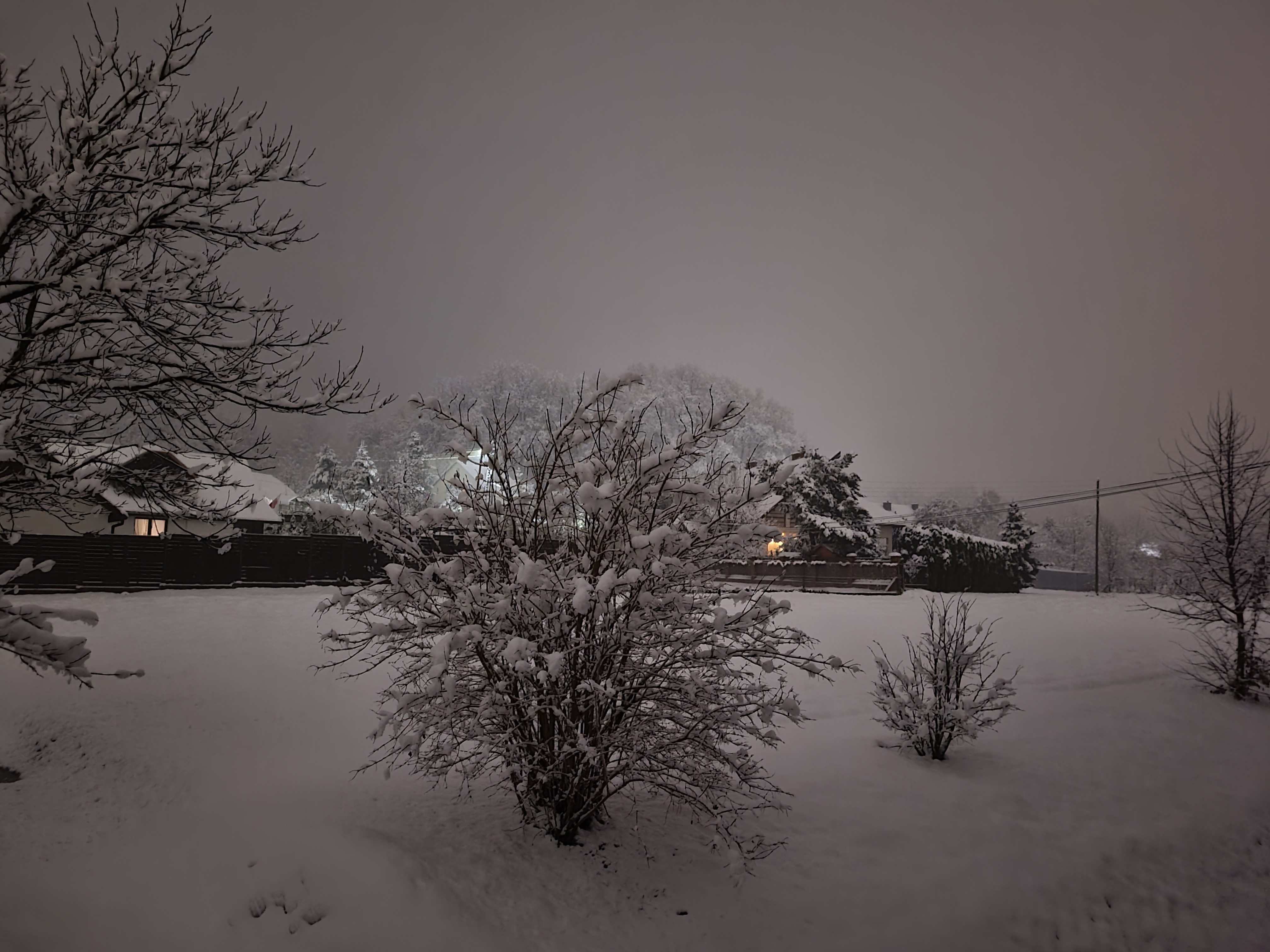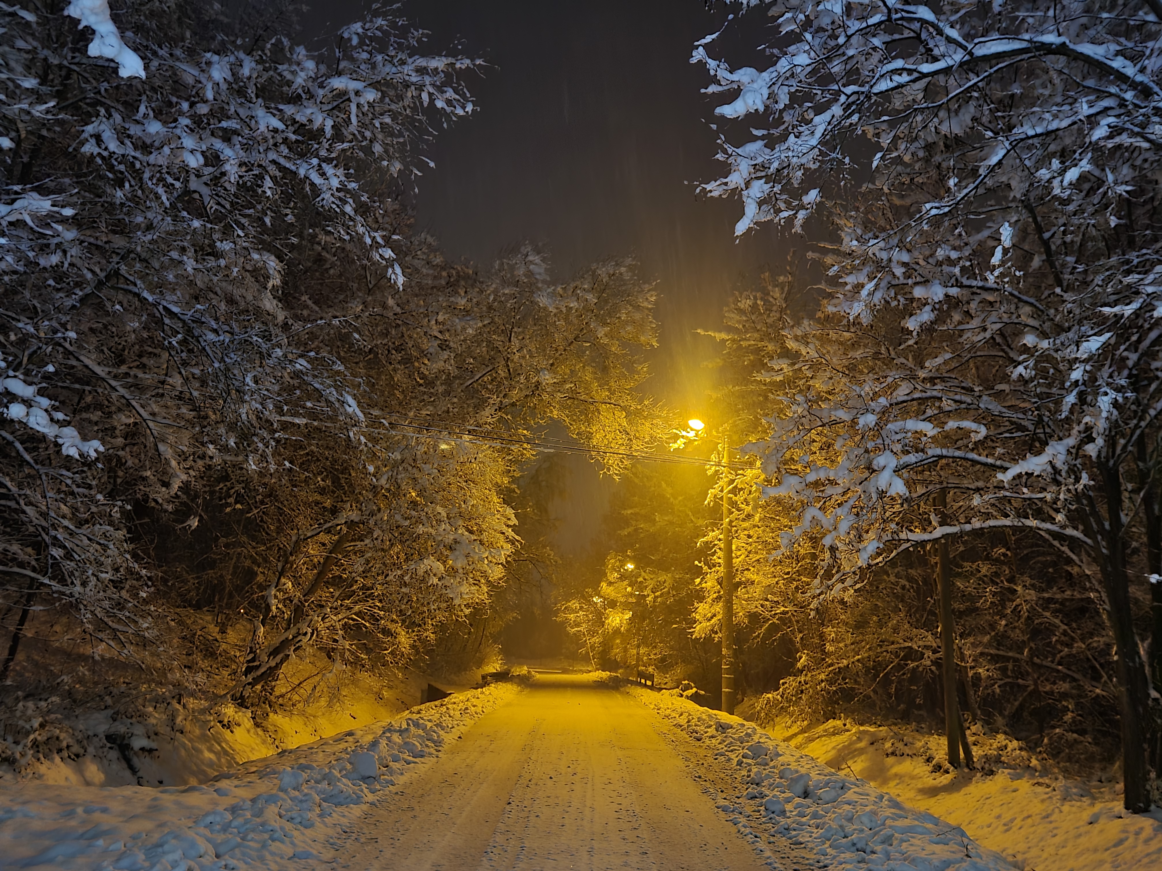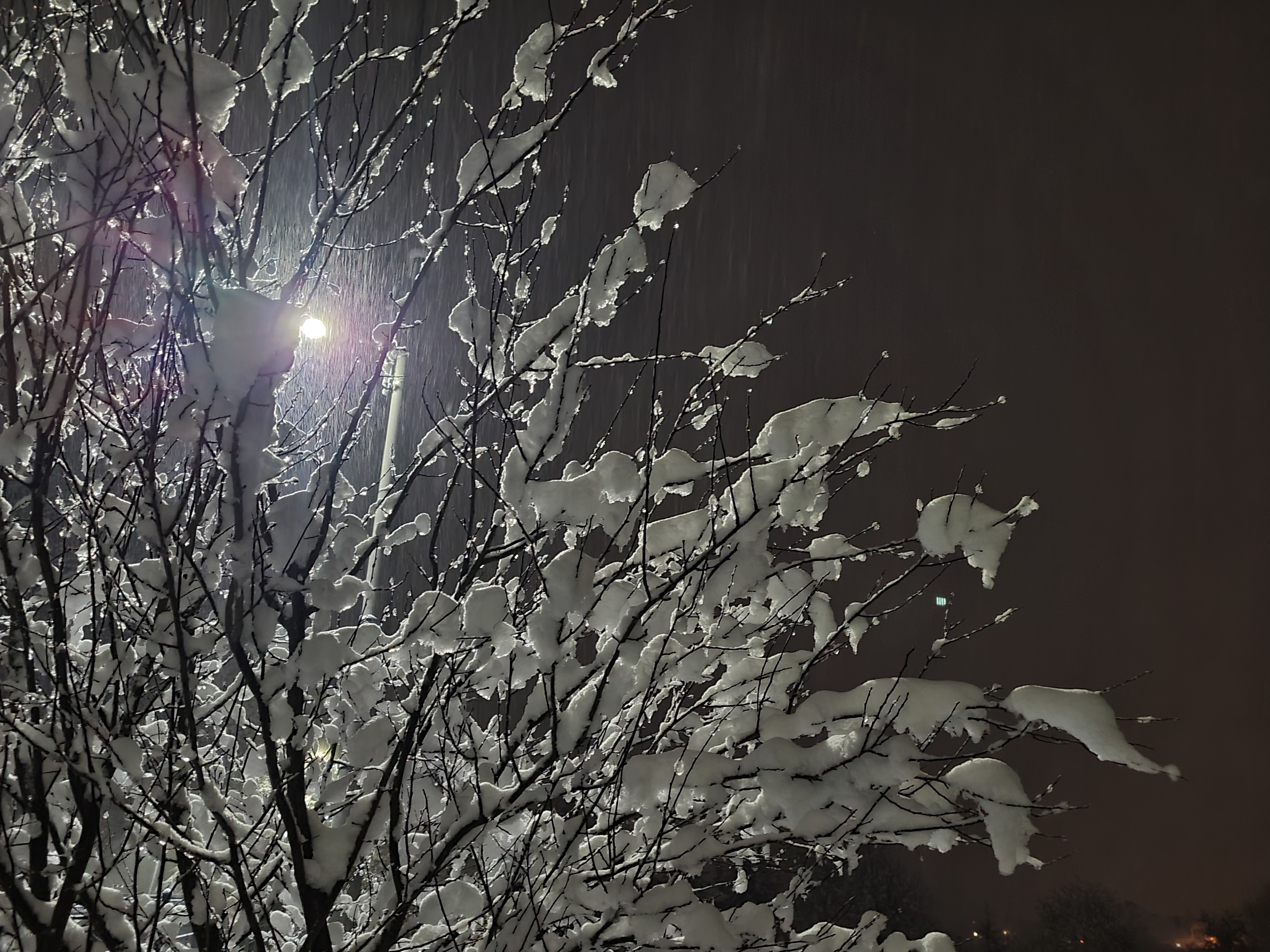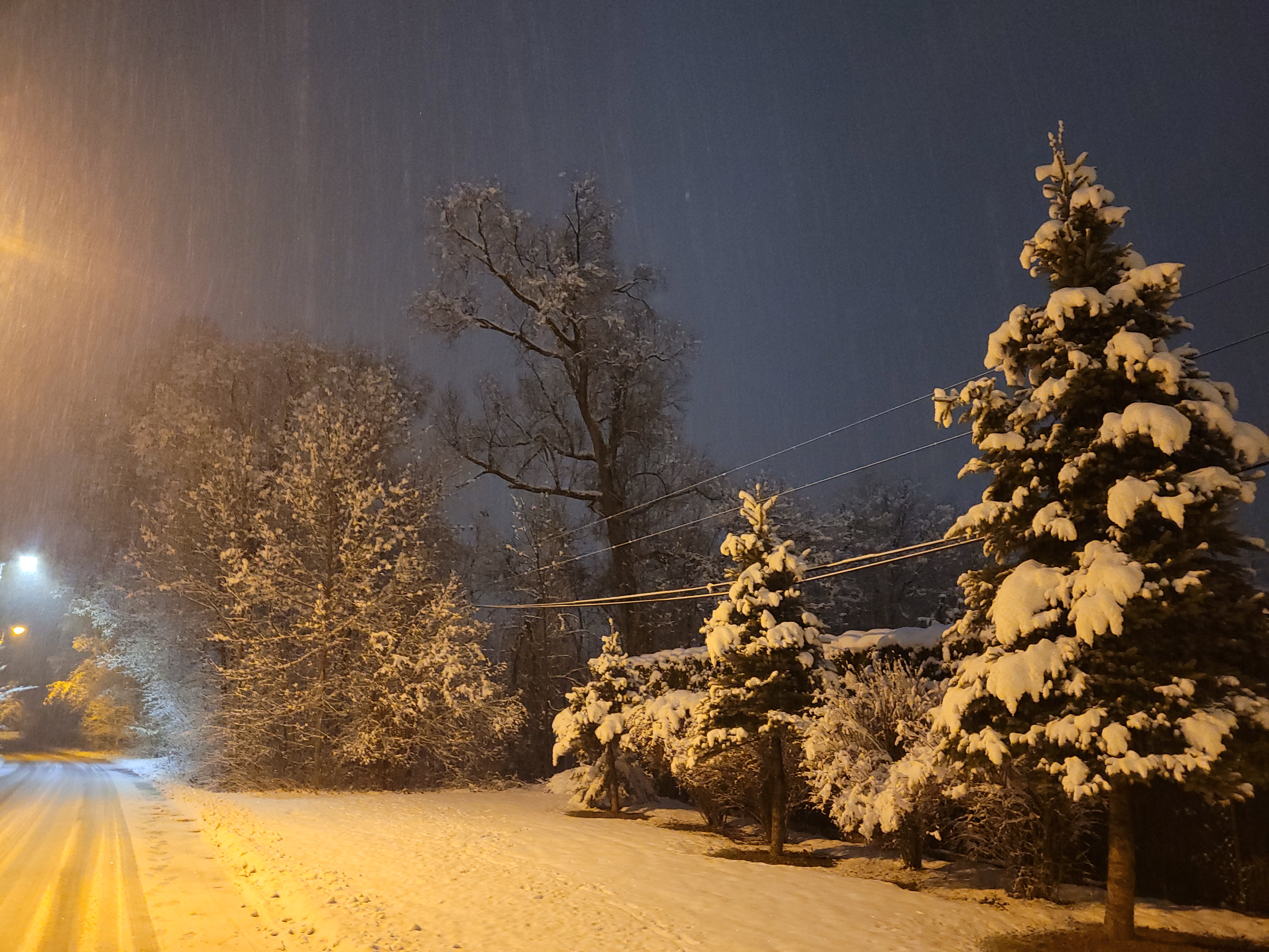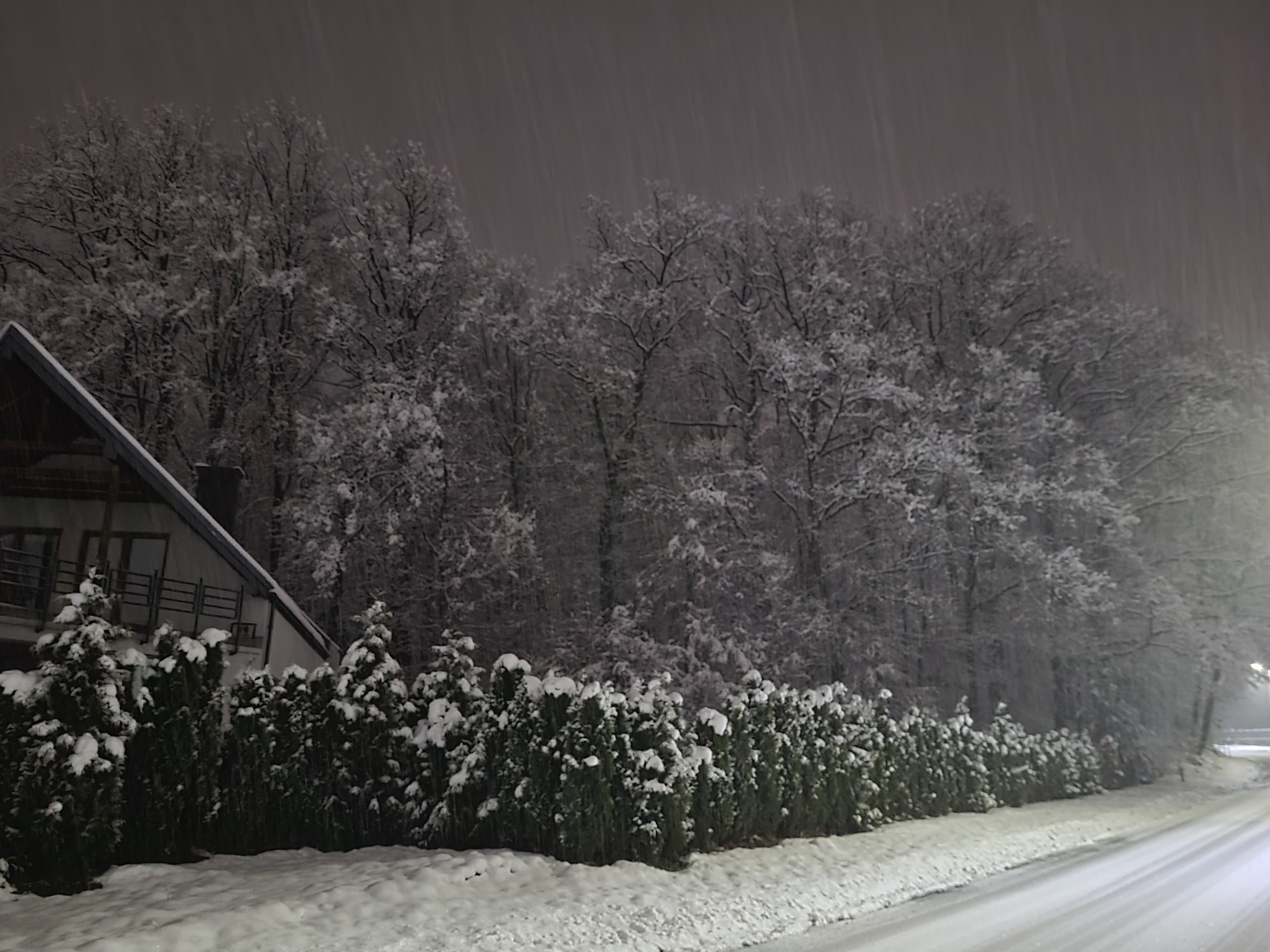 Najbardziej mi się podobają fotki przy białym (LEDowym) oświetleniu. Bo przy pomarańczowym oświetleniu sodowym kolor śniegu jest po prostu przekłamany. A z powodu jego wysokiego albedo mocno odbija on światło, więc chmury też są bardziej pomarańczowe niż zazwyczaj