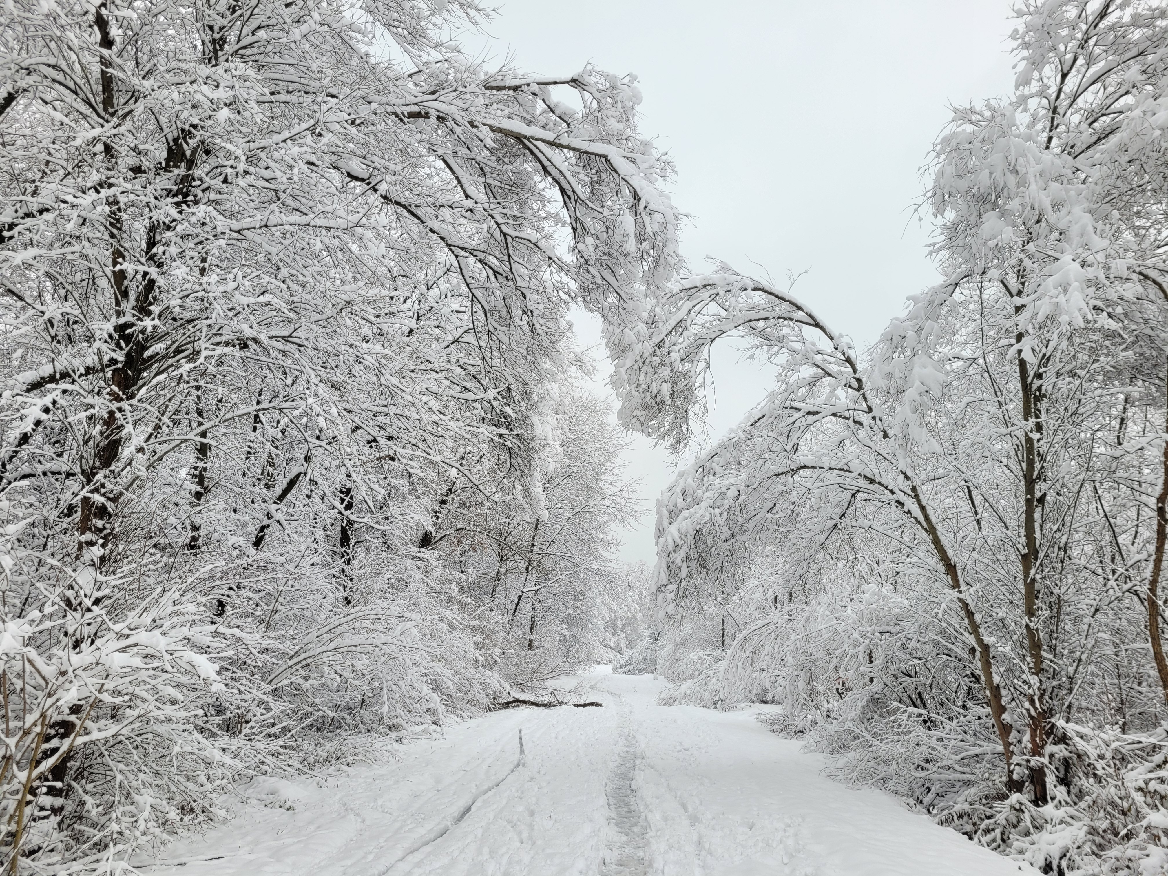 Ciąg dalszy Miniona noc za sprawą ujemnej temperatury okazała się bardziej skuteczna od wczorajszego dnia. Pokrywa śnieżna ma 18 cm grubości i wspaniale oblepia drzewa. Widoki są bajeczne, zwłaszcza poza miastem, gdzie do walki z zimą rzucono chyba wszystkie możliwe siły.