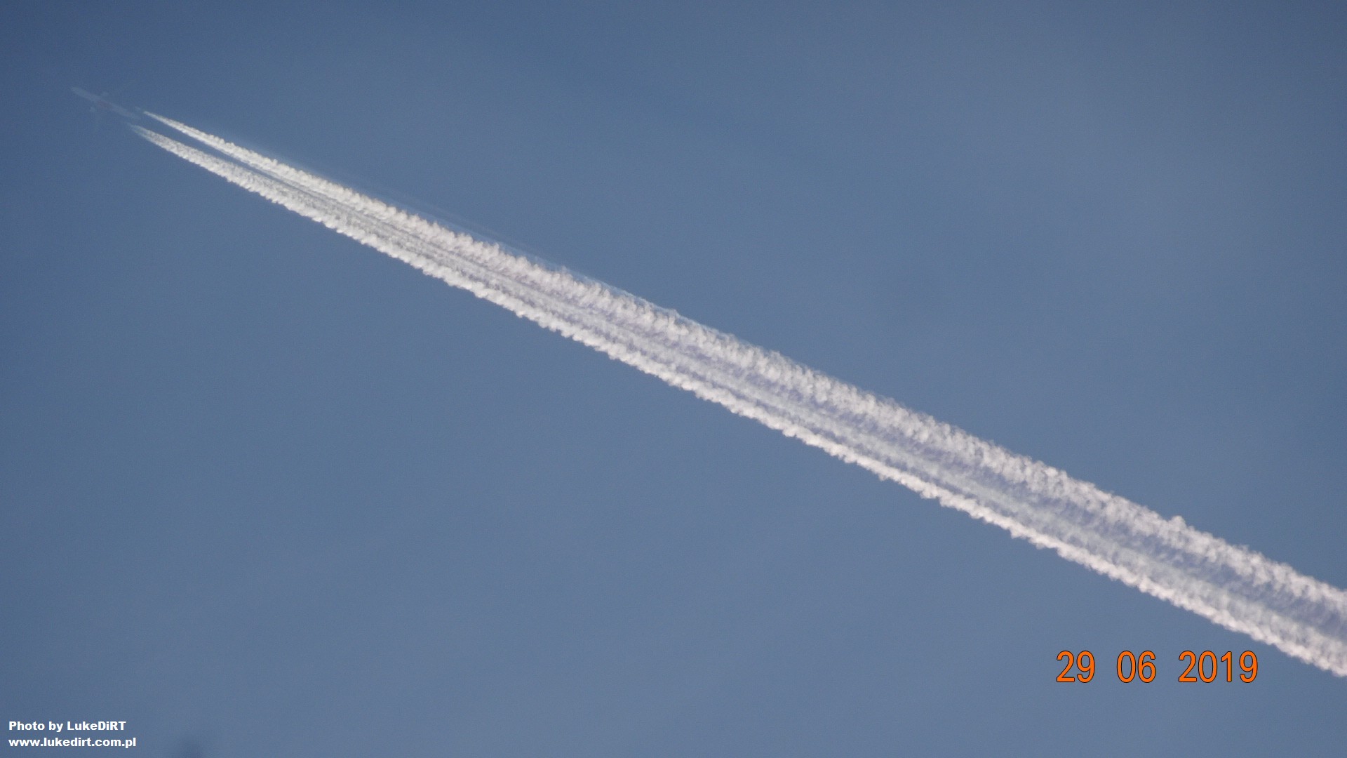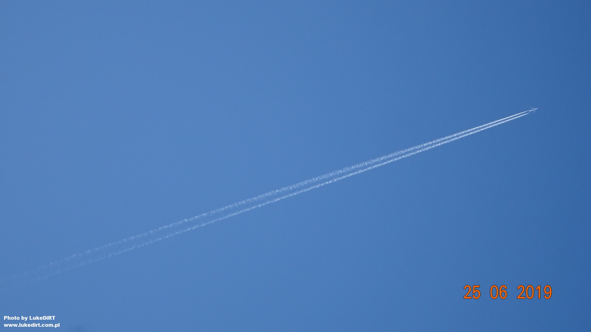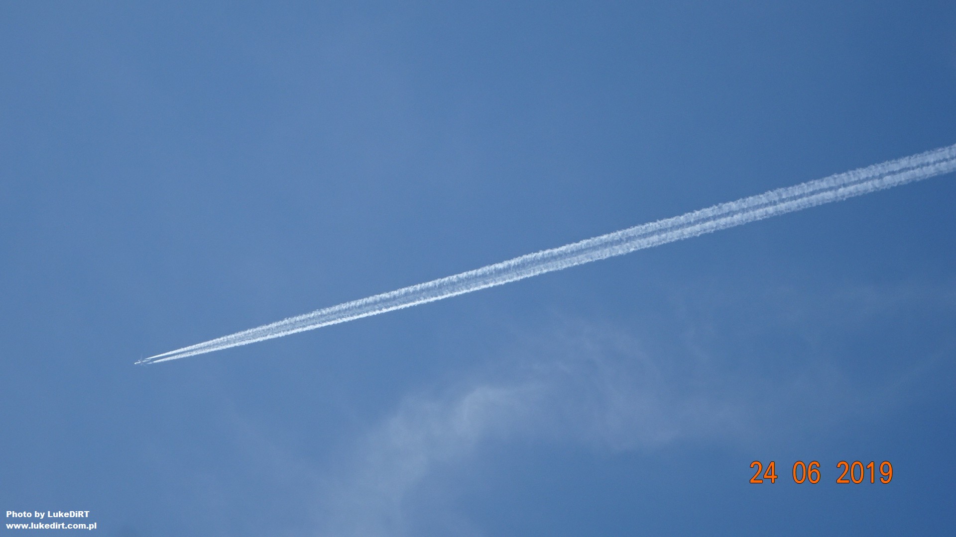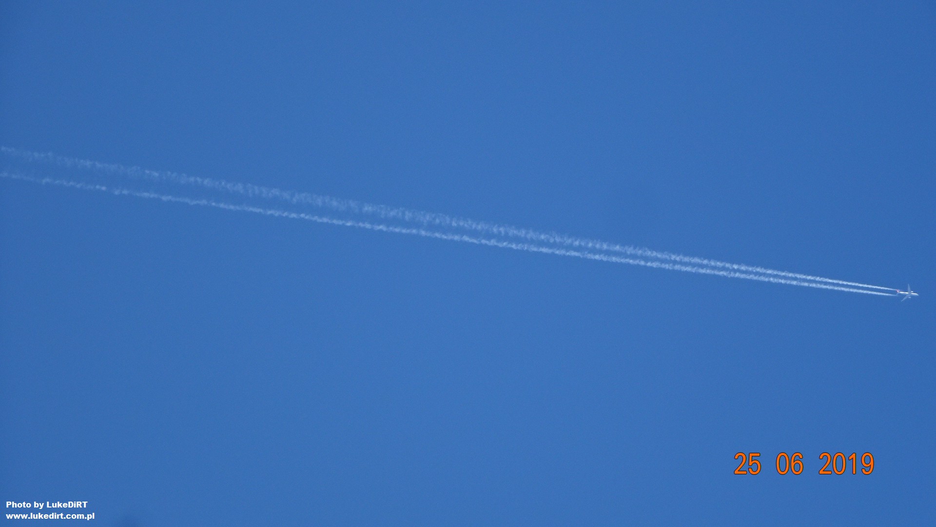 Dziś (29 czerwca) ruch lotniczy znów jest potężny, a korzystne warunki atnosferyczne sprawiają, że samoloty zostawiają po sobie mnóstwo smug kondensacyjnych. Poniższe zdjęcie zrobiłem dosłownie chwilę temu, widać na nim prawdziwe "skrzyżowanie" powietrznych korytarzy nad Nowym Sączem. Najgrubsza smuga pochodzi od Airbusa A380 Emirates lecącego z San Francisco do Dubaju (jedna z najdłuższych tras na świecie, 16 godzin lotu), samolot dolatujący do prawego dolnego rogu zdjęcia to Airbus A330-200 Turkish Airlines z Berlina do Stambułu (taki jak ten uwieczniony przez Ciebie), zaś trzecią smugę spowodował najmniejszy z tej trójki Boeing 737-800 skandynawskich linii lotniczych SAS przelatujący z greckiej Kavali na lotnisko Arlanda w Sztokholmie.