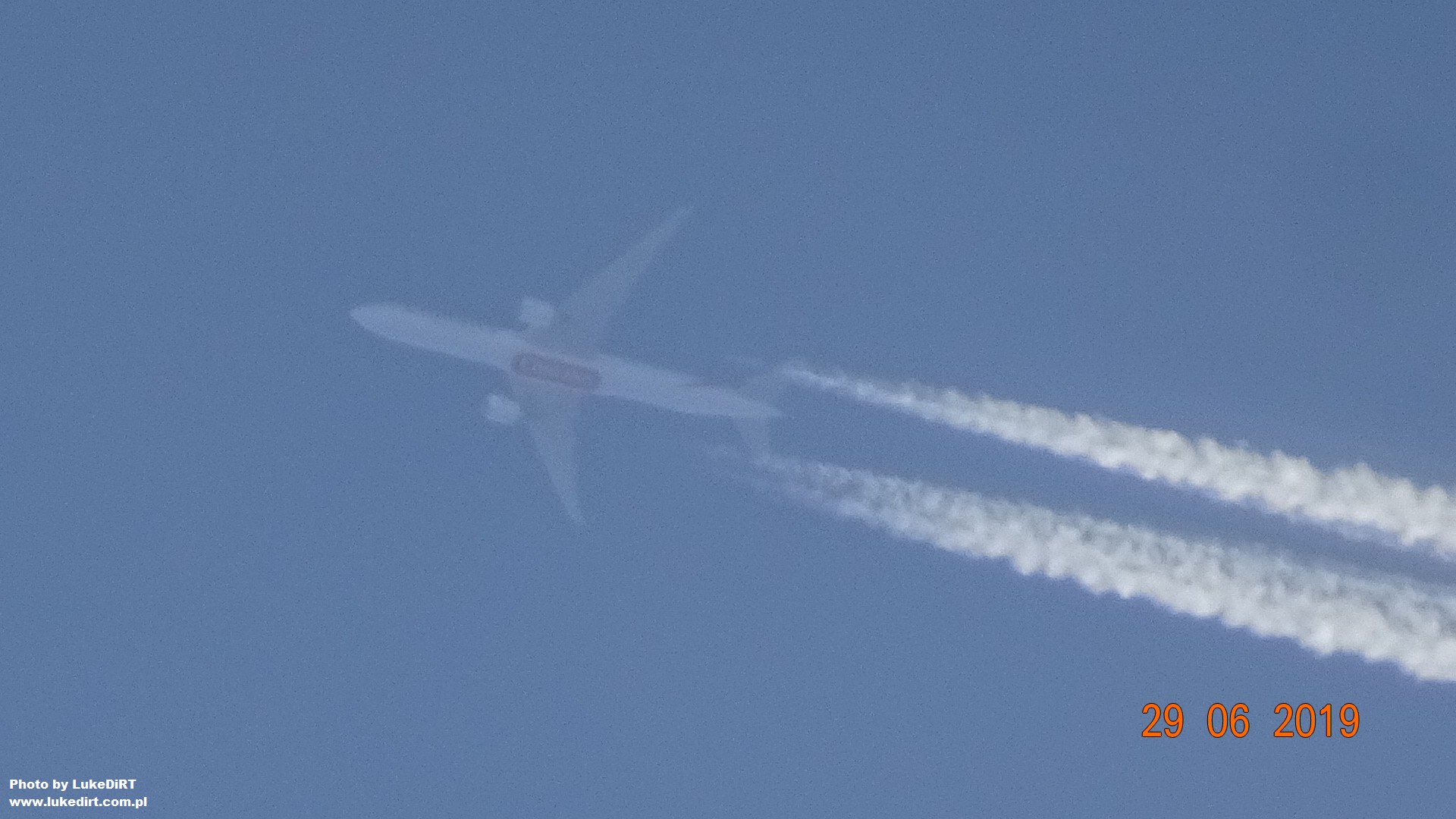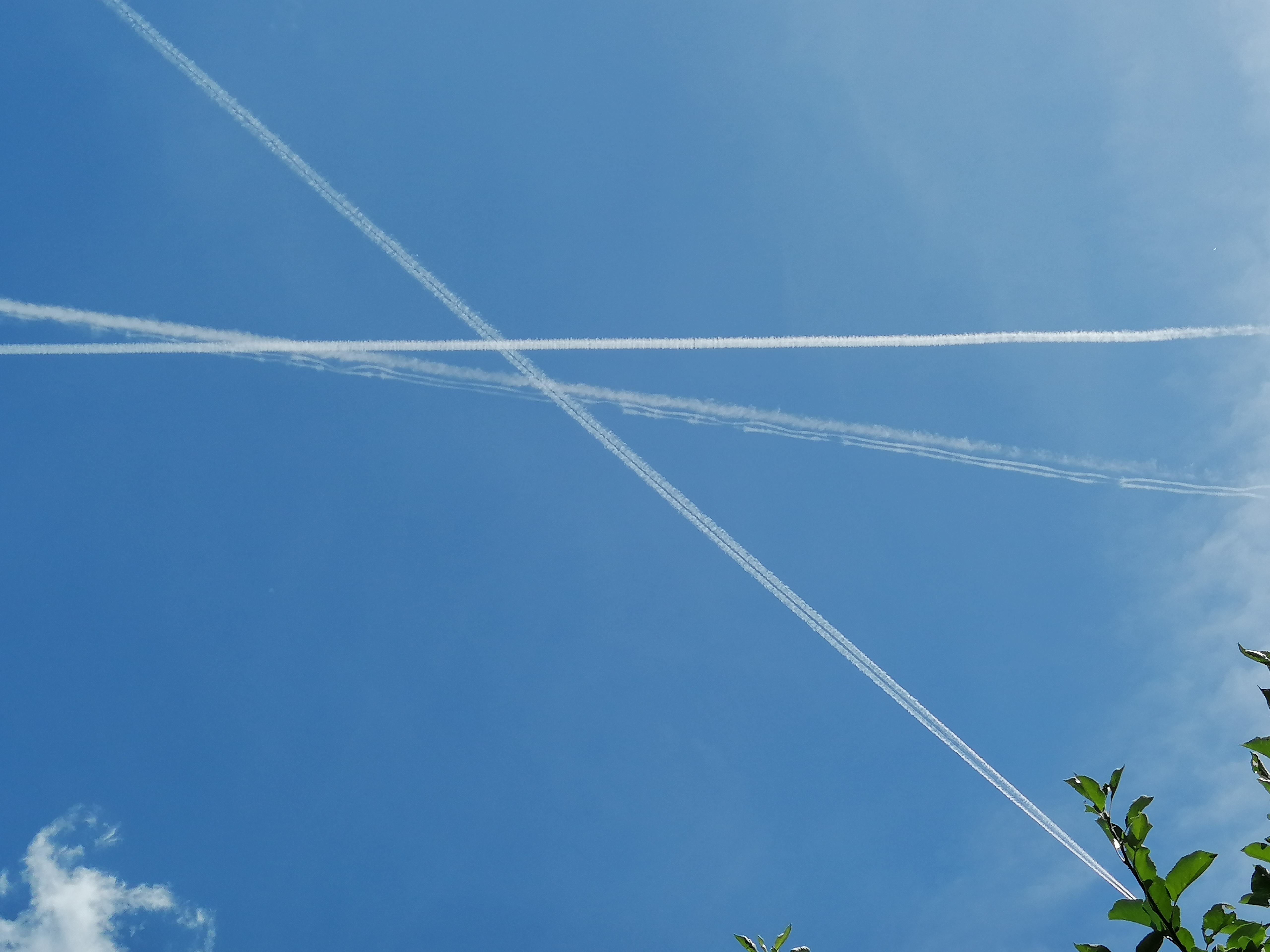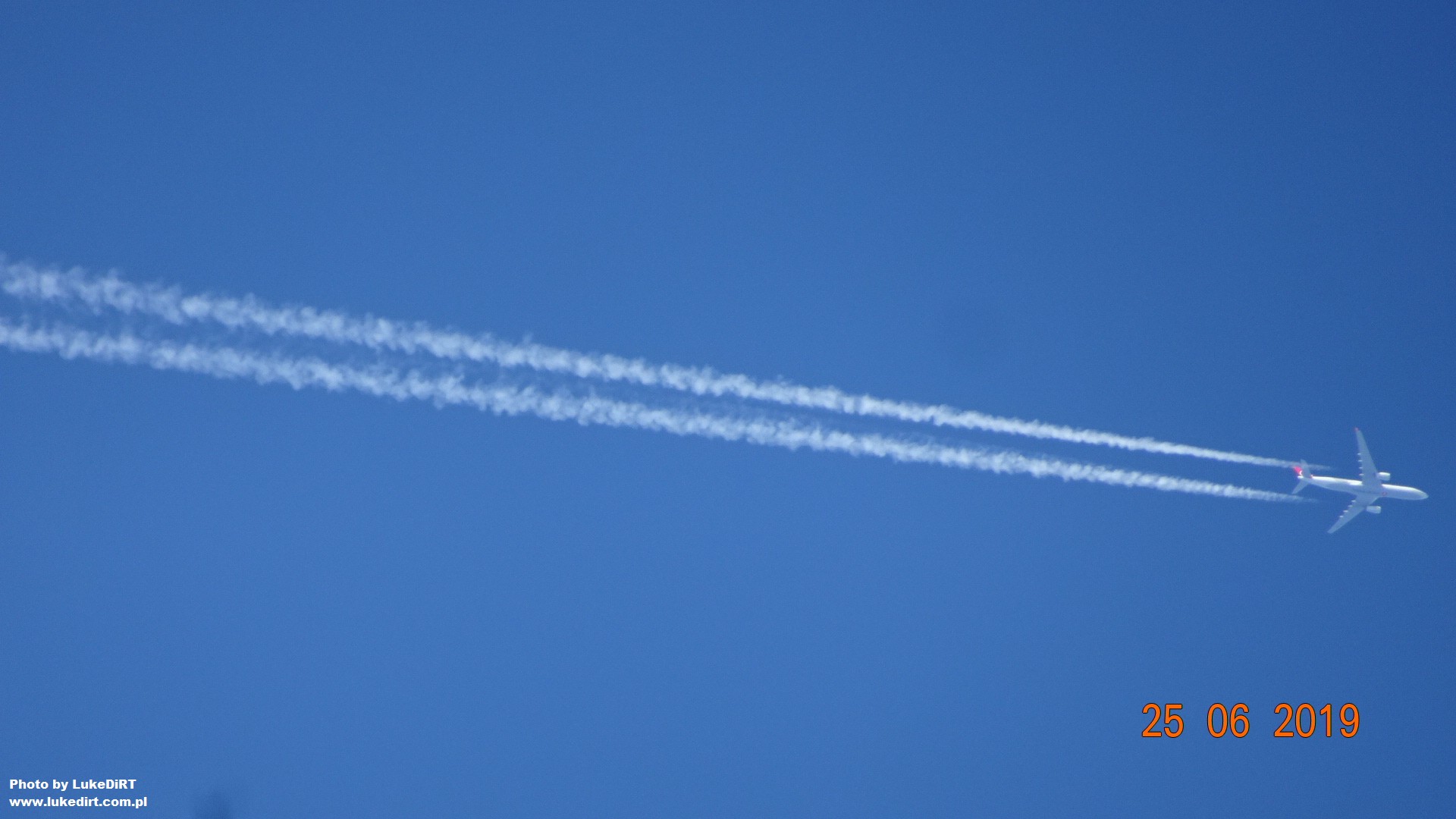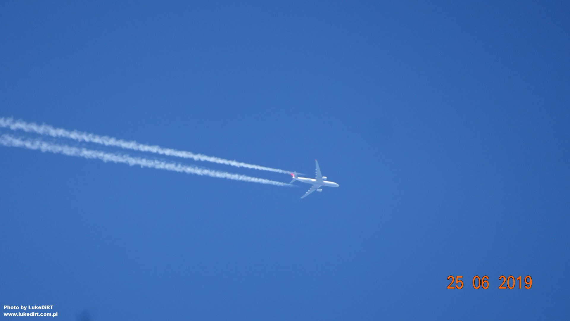 Dziś (29 czerwca) ruch lotniczy znów jest potężny, a korzystne warunki atnosferyczne sprawiają, że samoloty zostawiają po sobie mnóstwo smug kondensacyjnych. Poniższe zdjęcie zrobiłem dosłownie chwilę temu, widać na nim prawdziwe "skrzyżowanie" powietrznych korytarzy nad Nowym Sączem. Najgrubsza smuga pochodzi od Airbusa A380 Emirates lecącego z San Francisco do Dubaju (jedna z najdłuższych tras na świecie, 16 godzin lotu), samolot dolatujący do prawego dolnego rogu zdjęcia to Airbus A330-200 Turkish Airlines z Berlina do Stambułu (taki jak ten uwieczniony przez Ciebie), zaś trzecią smugę spowodował najmniejszy z tej trójki Boeing 737-800 skandynawskich linii lotniczych SAS przelatujący z greckiej Kavali na lotnisko Arlanda w Sztokholmie.