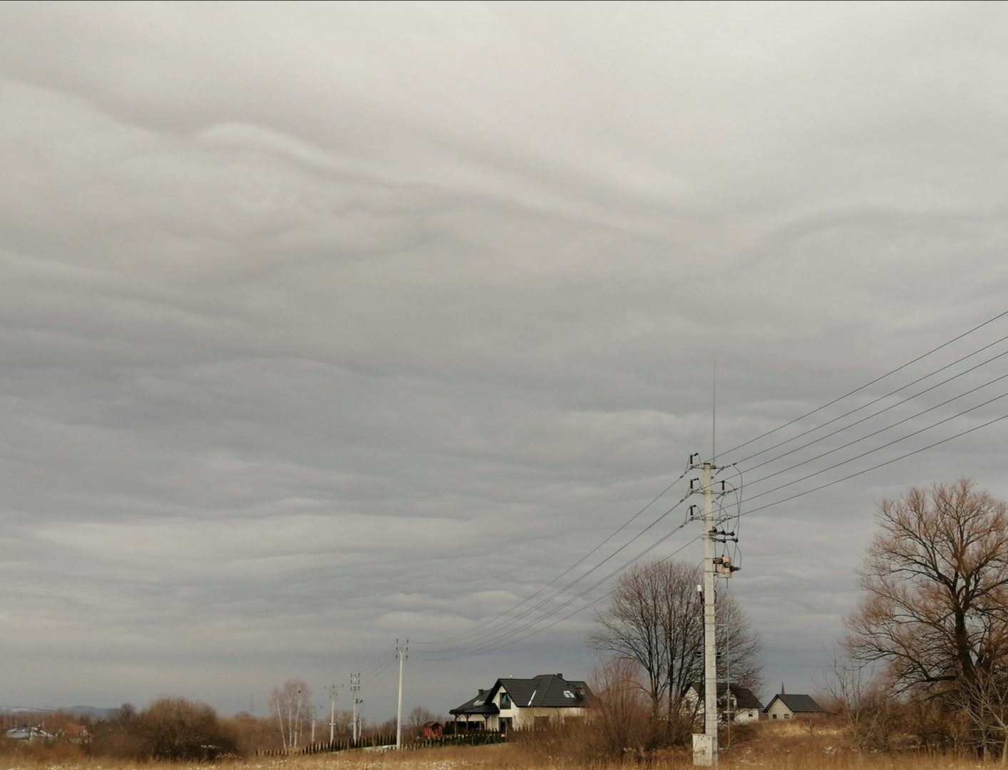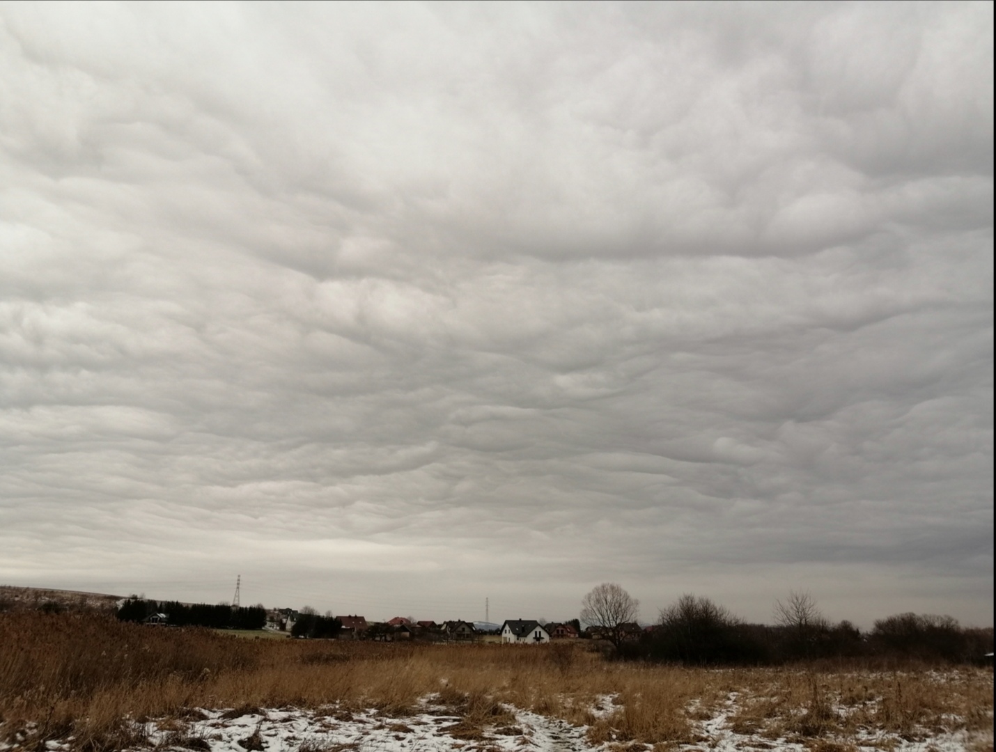 Te chmury kojarzą mi się na ogół z niebem po burzy. Pojawiają się rzadko, a jeśli już - to raczej nie zimą. Stąd pogoda sprawiła mi dzisiaj wyjątkową niespodziankę. W kończącym się roku było ich wiele, a być może zbyt wiele - ta jednak wyjątkowo łagodna i widowiskowa zarazem. Mammatusy sfotografowałem w godzinach 11:40-50. Jeszcze godzinę wcześniej niebo było praktycznie bezchmurne, ale co poradzić. I tak w powietrzu czuć magię