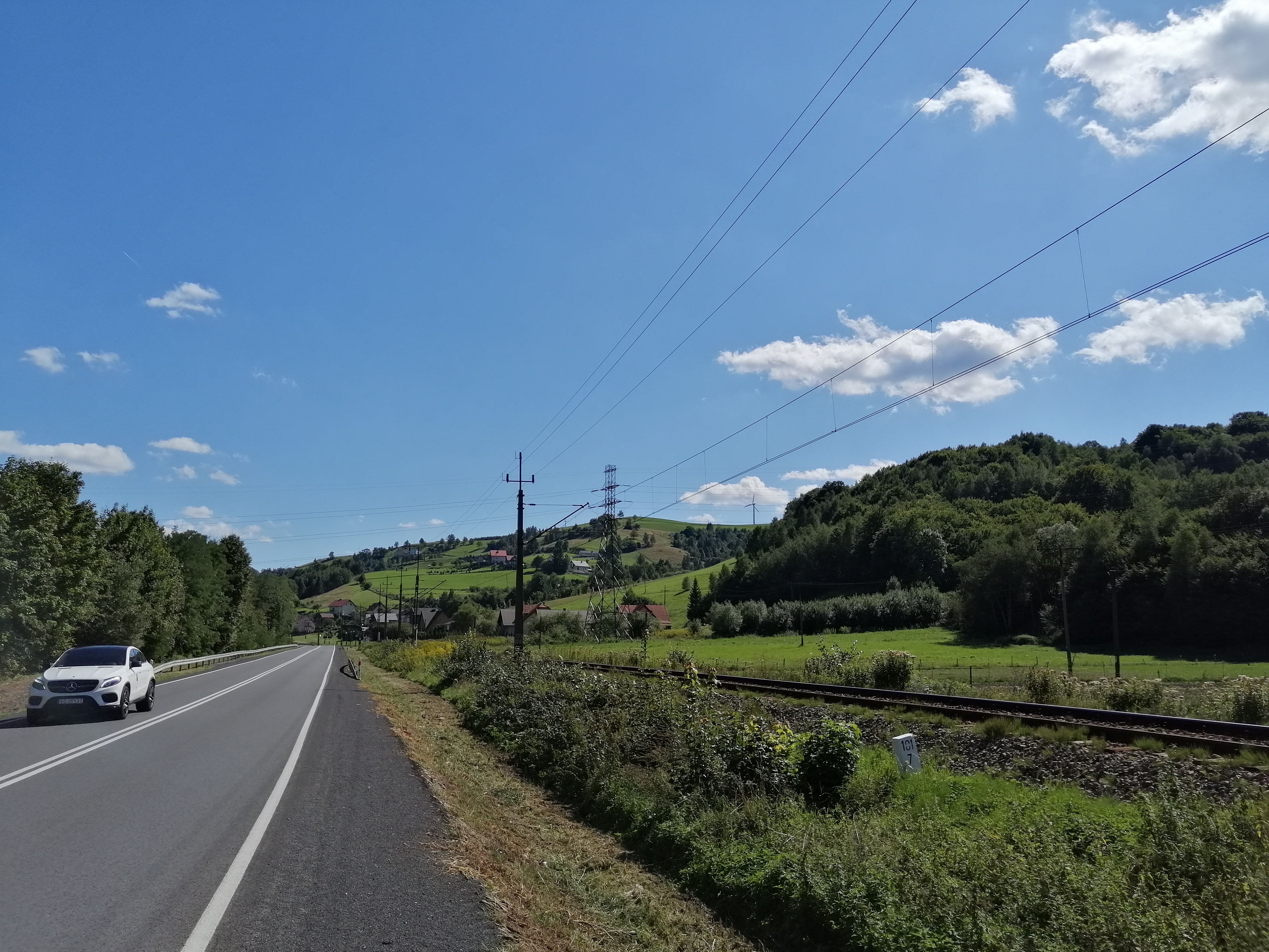 Nie pamiętam która z moich wycieczek była najdłuższa, ale najprawdopodobniej to przejazd nieco okrężną drogą do Grybowa 16 czerwca 2018 roku. Wtedy zrobiłem 65 km o ile dobrze pamiętam, w większości w górzystym terenie i nie zawsze po twardym podłożu, bo główną drogą nie jechałem, tylko raz ją przeciąłem. 60-kilka miałem też na liczniku po wyprawie do Piwnicznej, ale to była prosta trasa i tak bardzo nie czułem odległości, dwie godziny powrotu zleciały jak z płatka.