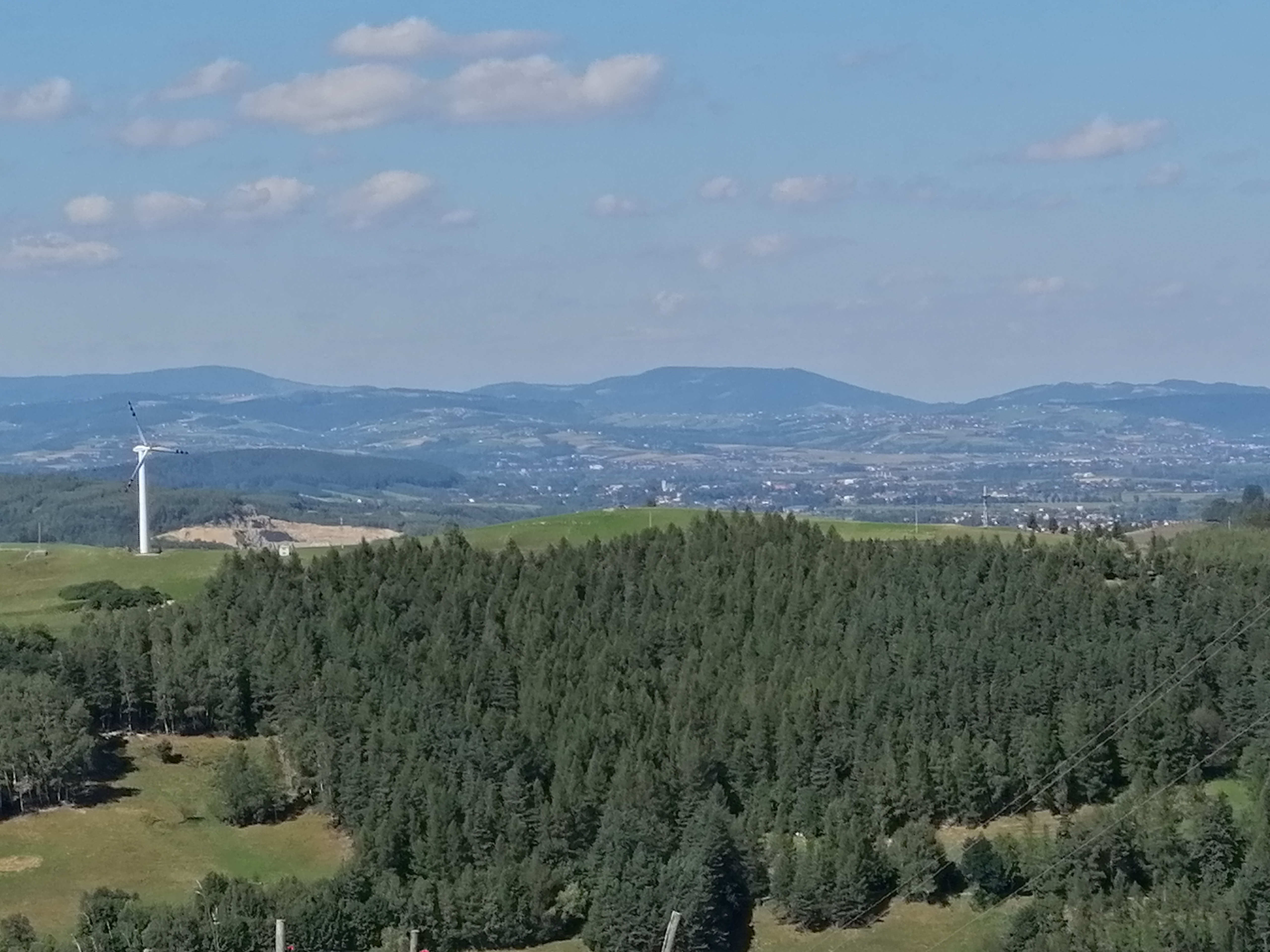 I jesteśmy na szczycie. W oddali widać nawet Stary i Nowy Sącz
